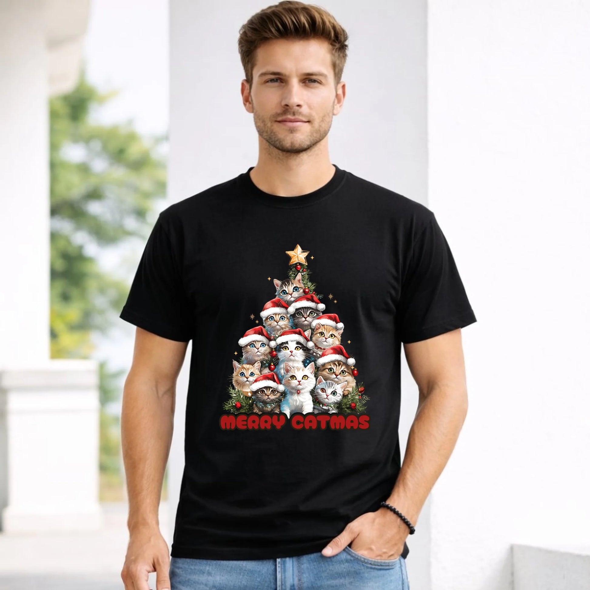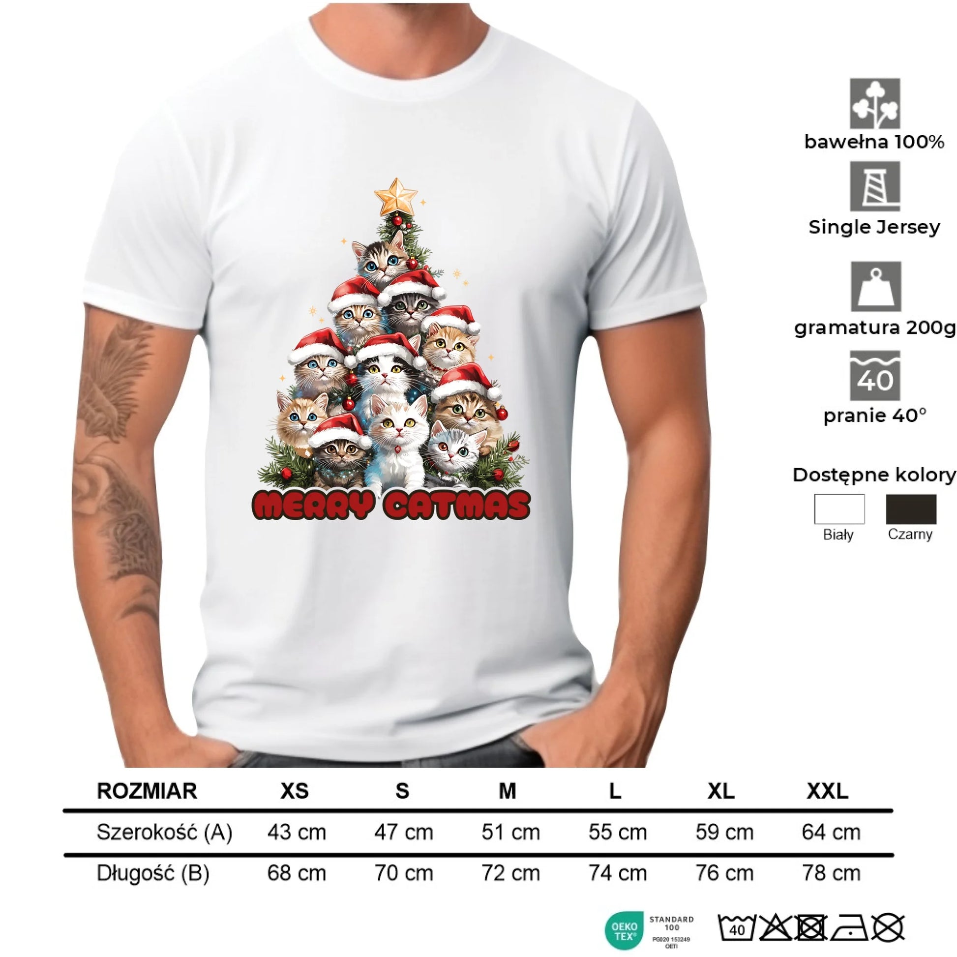 Koszulka męska świąteczna - Kocia choinka Merry Catmas BN20