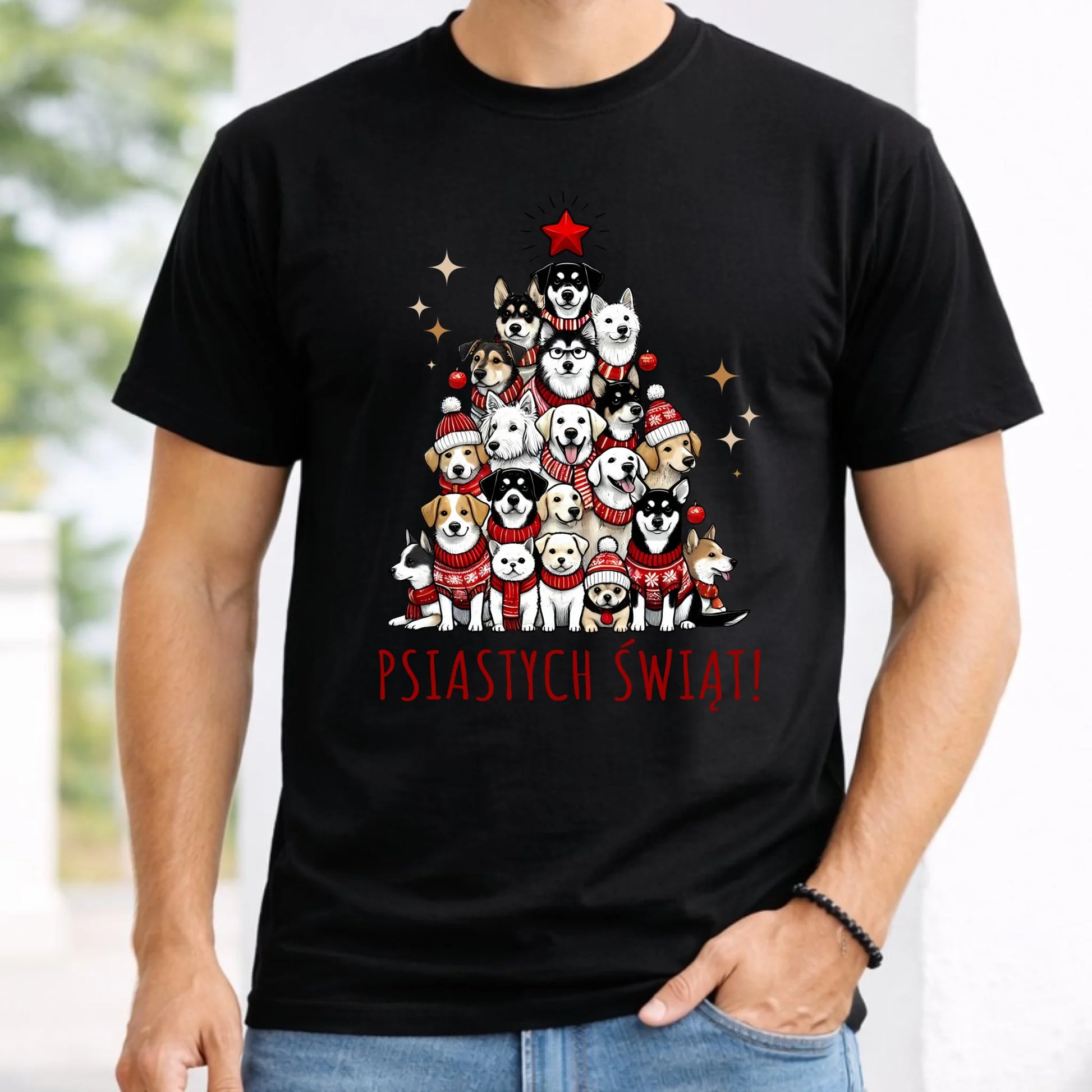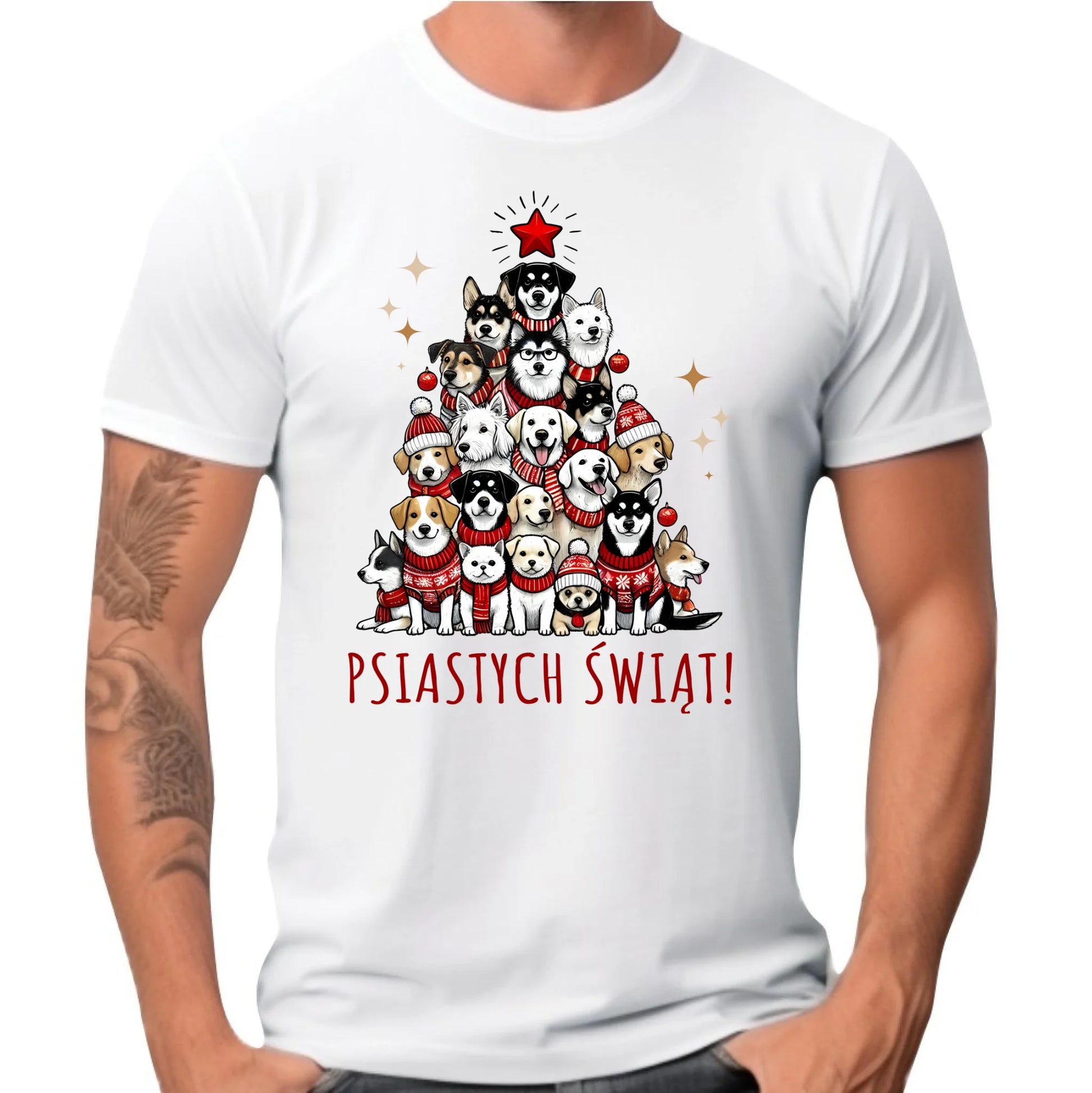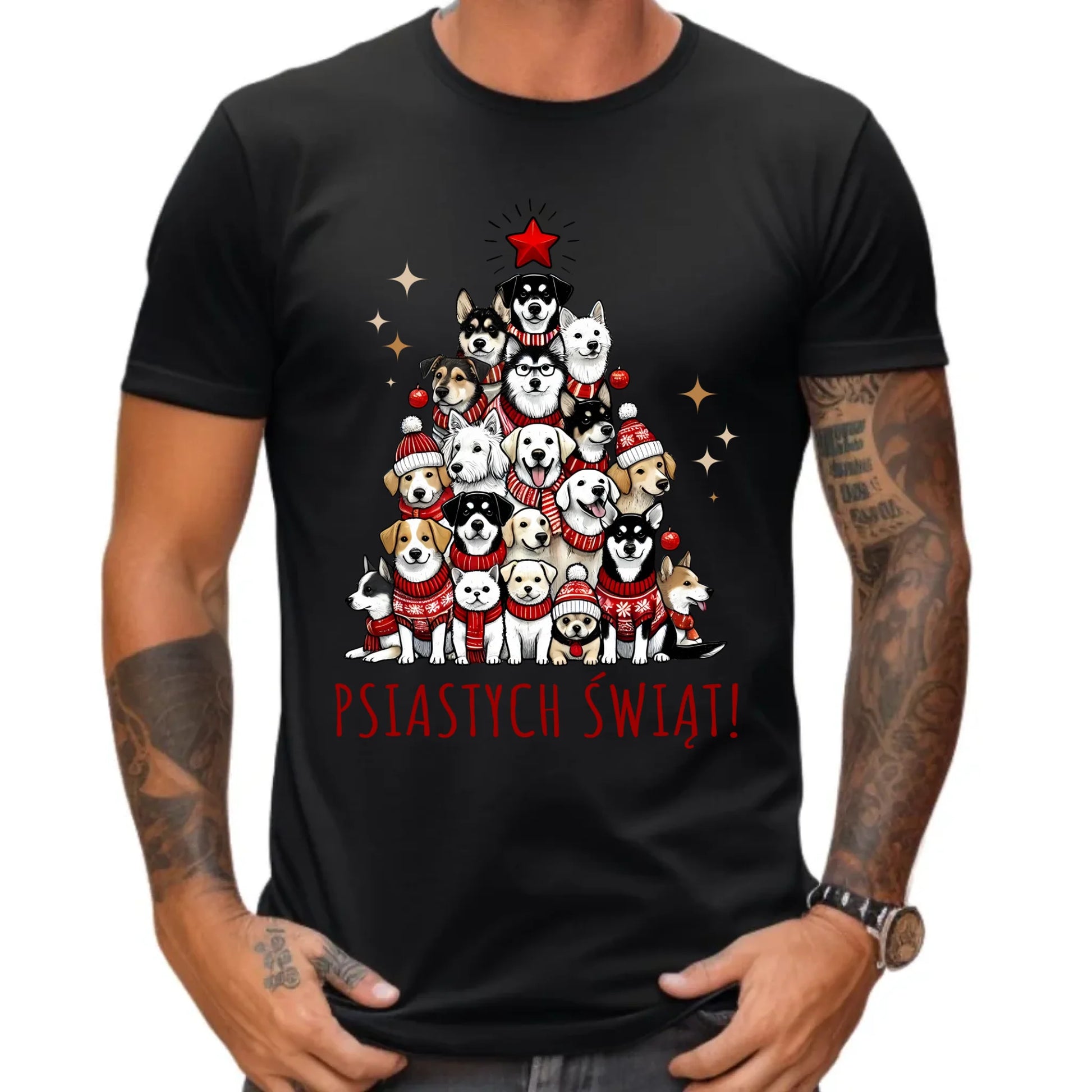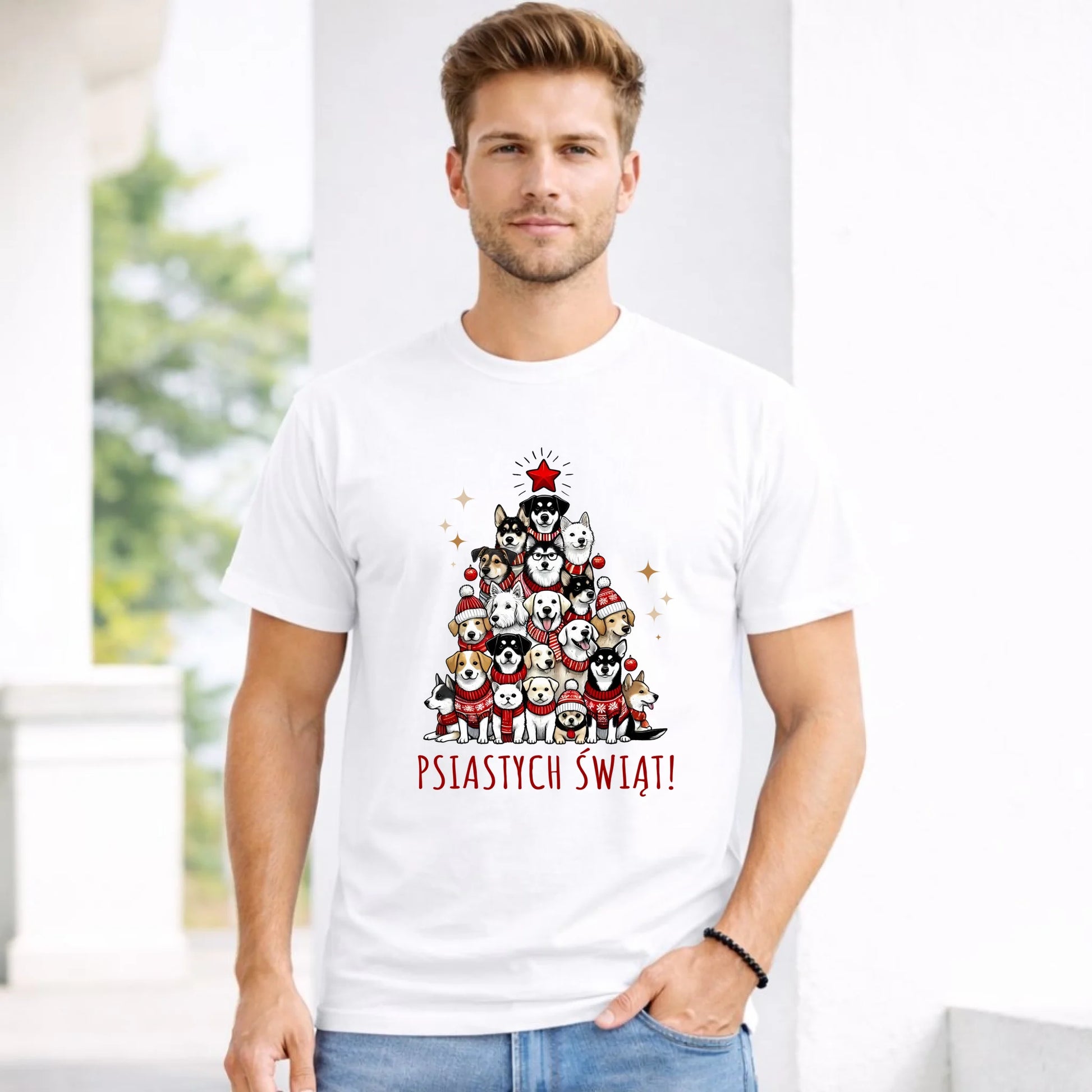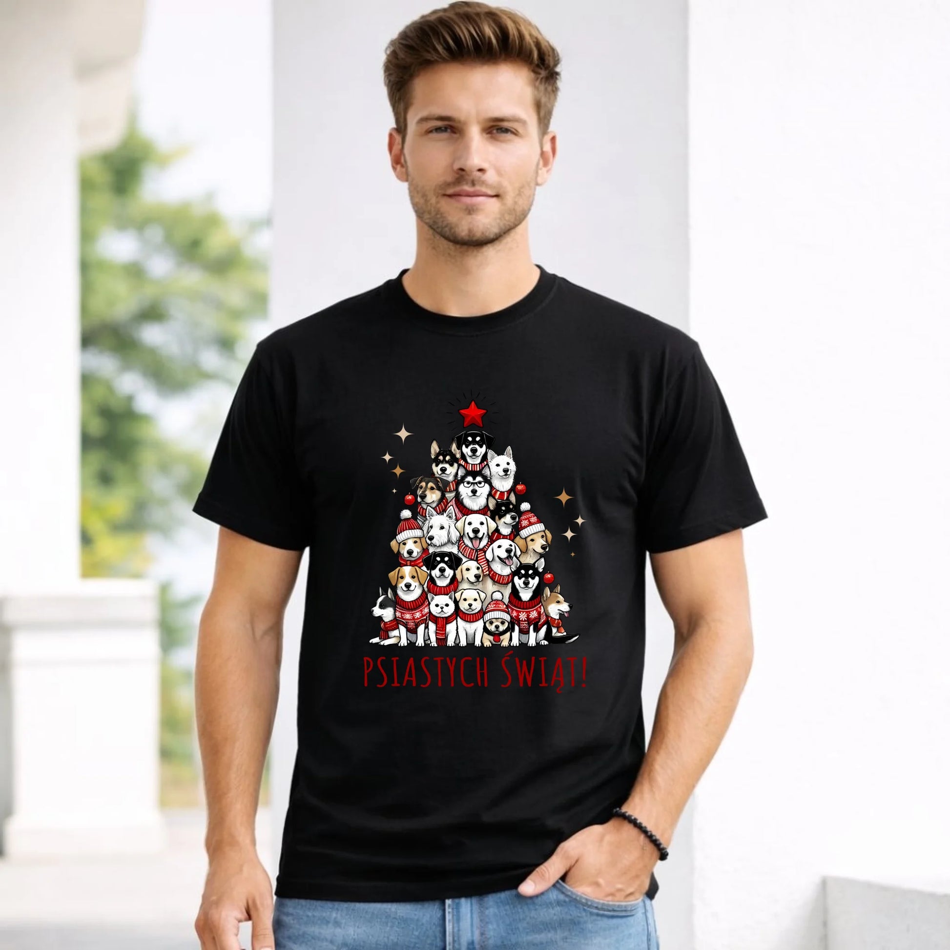 Koszulka męska świąteczna - Psia choinka Psiastych Świąt BN90