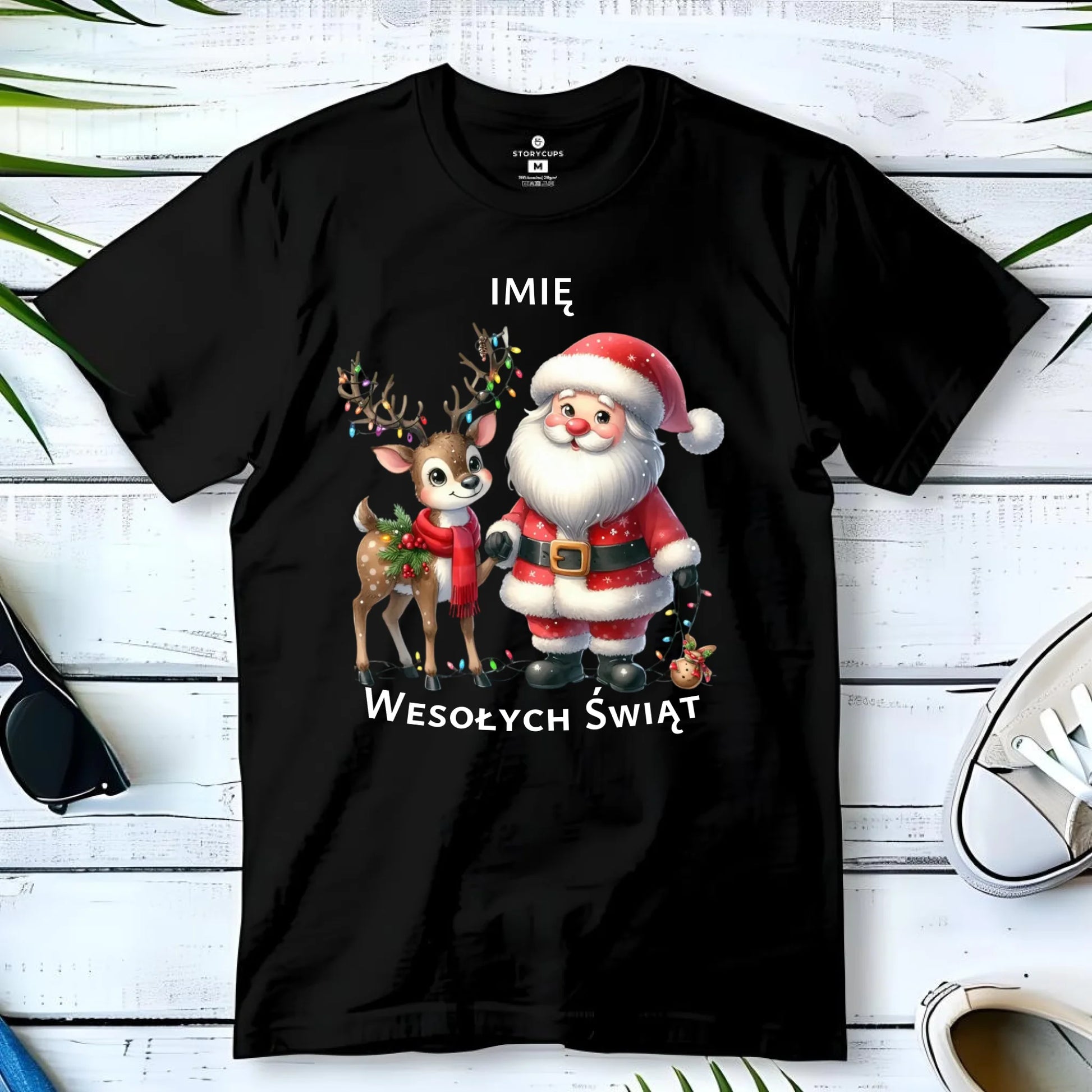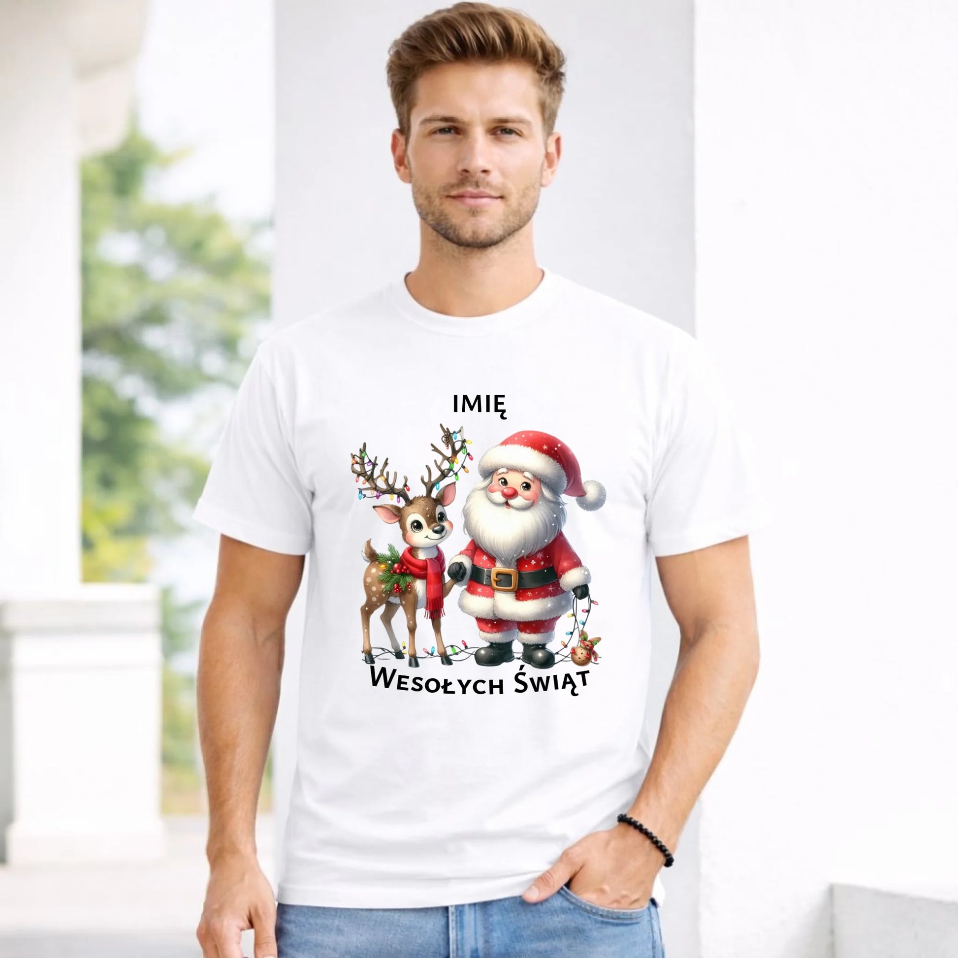 Koszulka męska świąteczna - Mikołaj z reniferem - personalizowana BN09