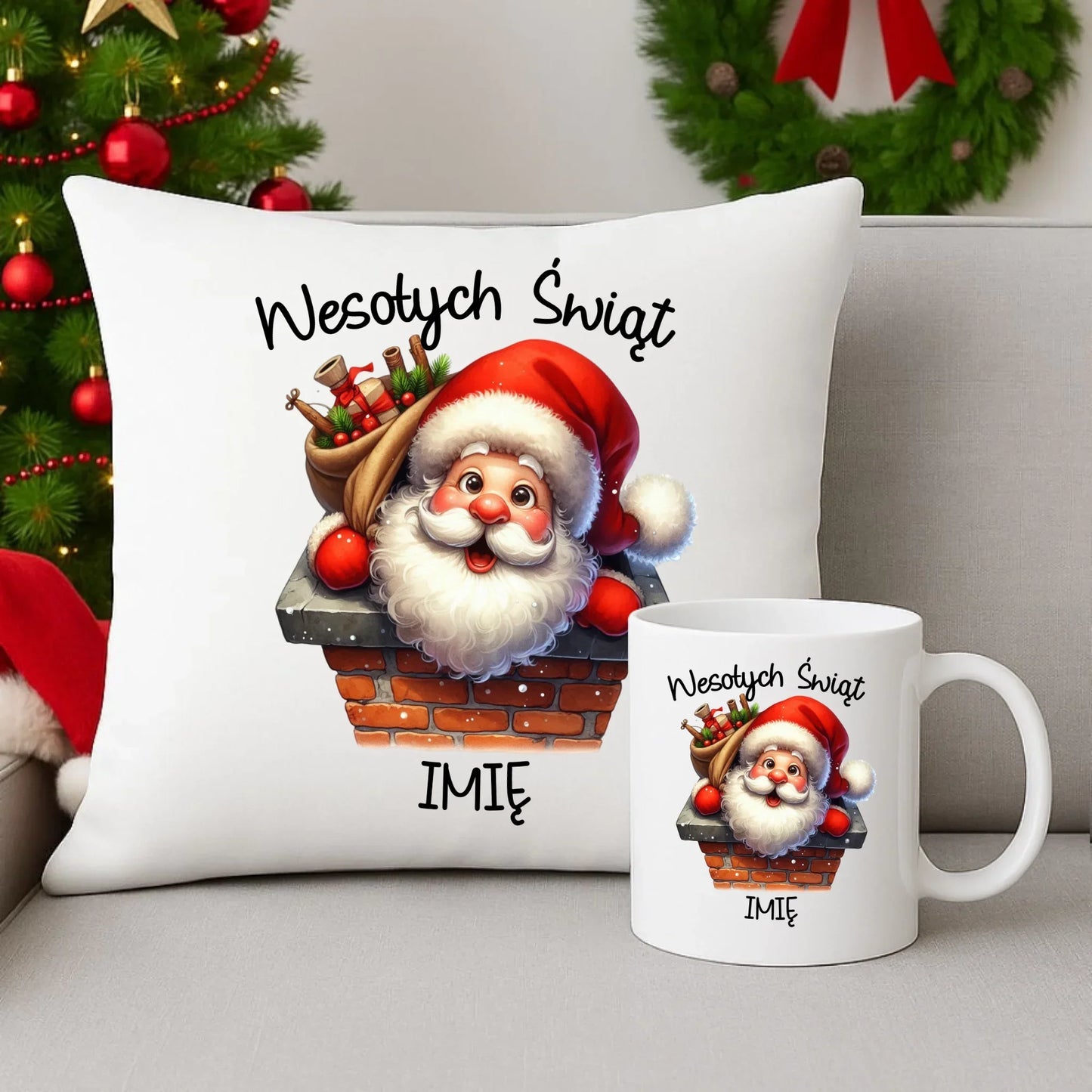 Mikołaj | Świąteczny zestaw poduszka i kubek z imieniem BN08