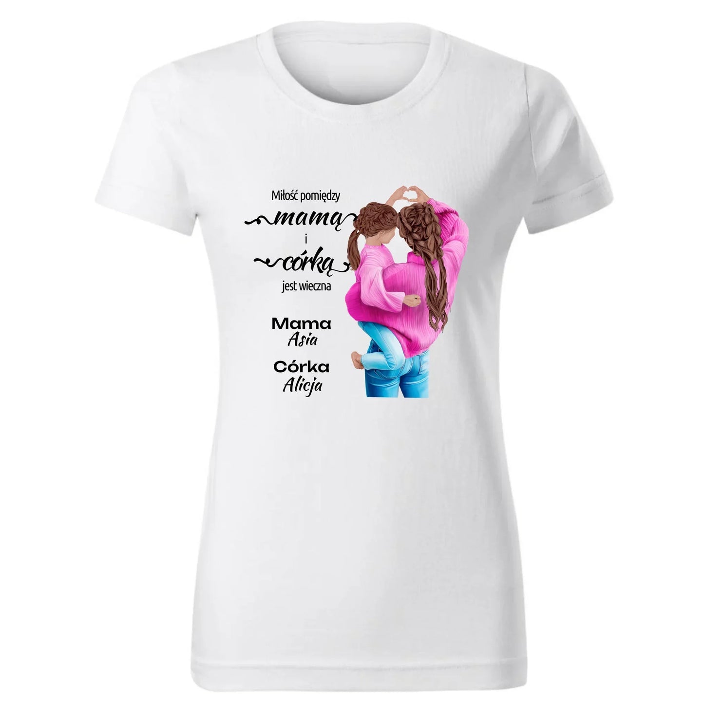 Miłość pomiędzy mamą i córką jest wieczna | Koszulka damska biała dla mamy DM38
