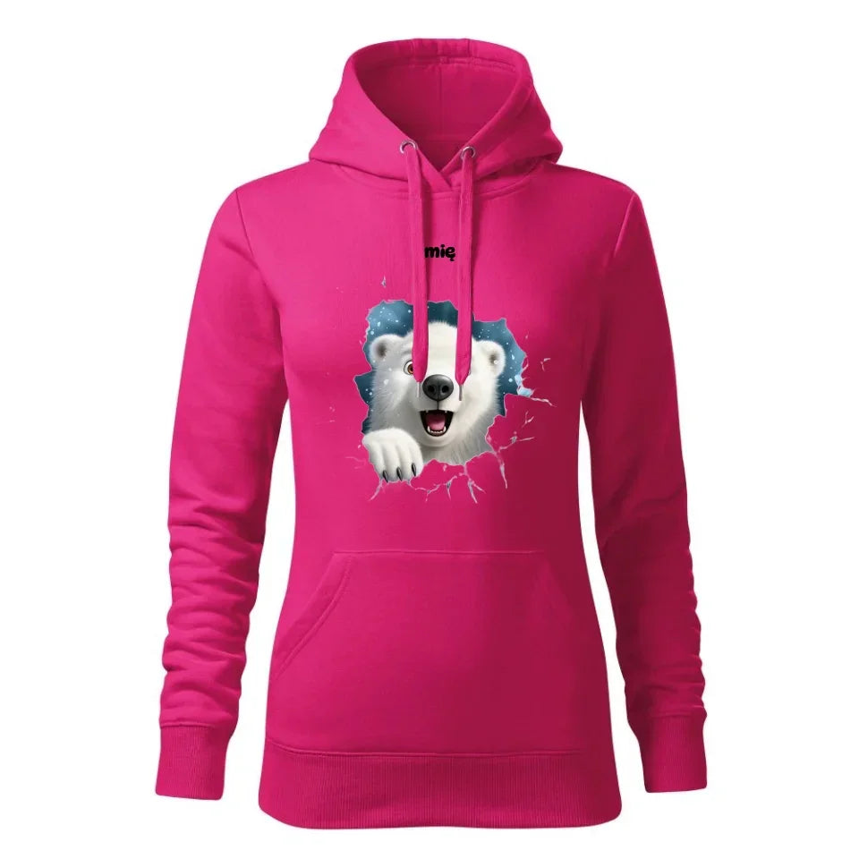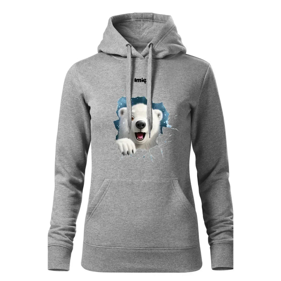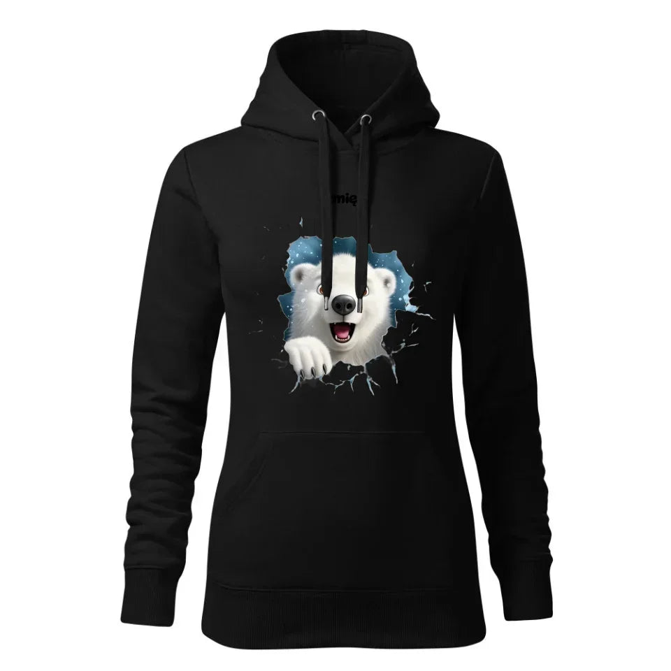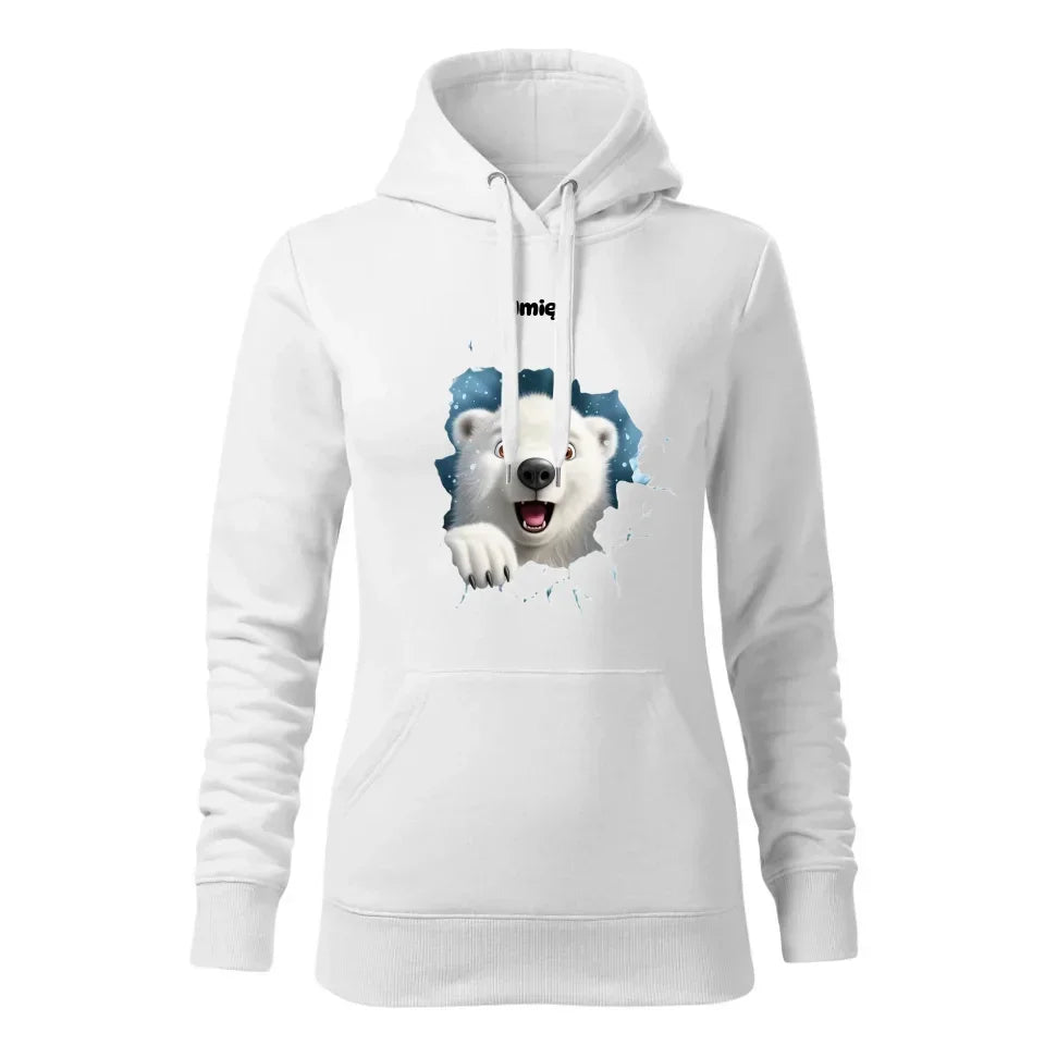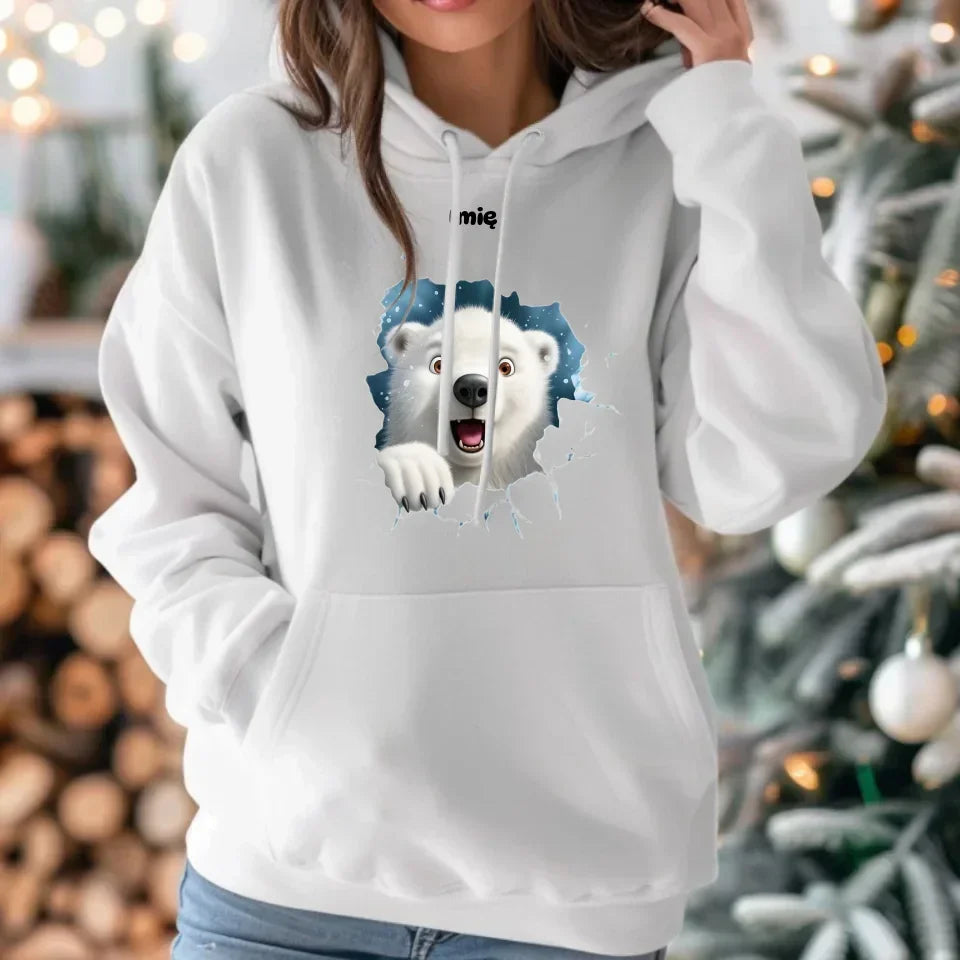 Miś polarny 3D | Personalizowana świąteczna bluza damska z kapturem BN86