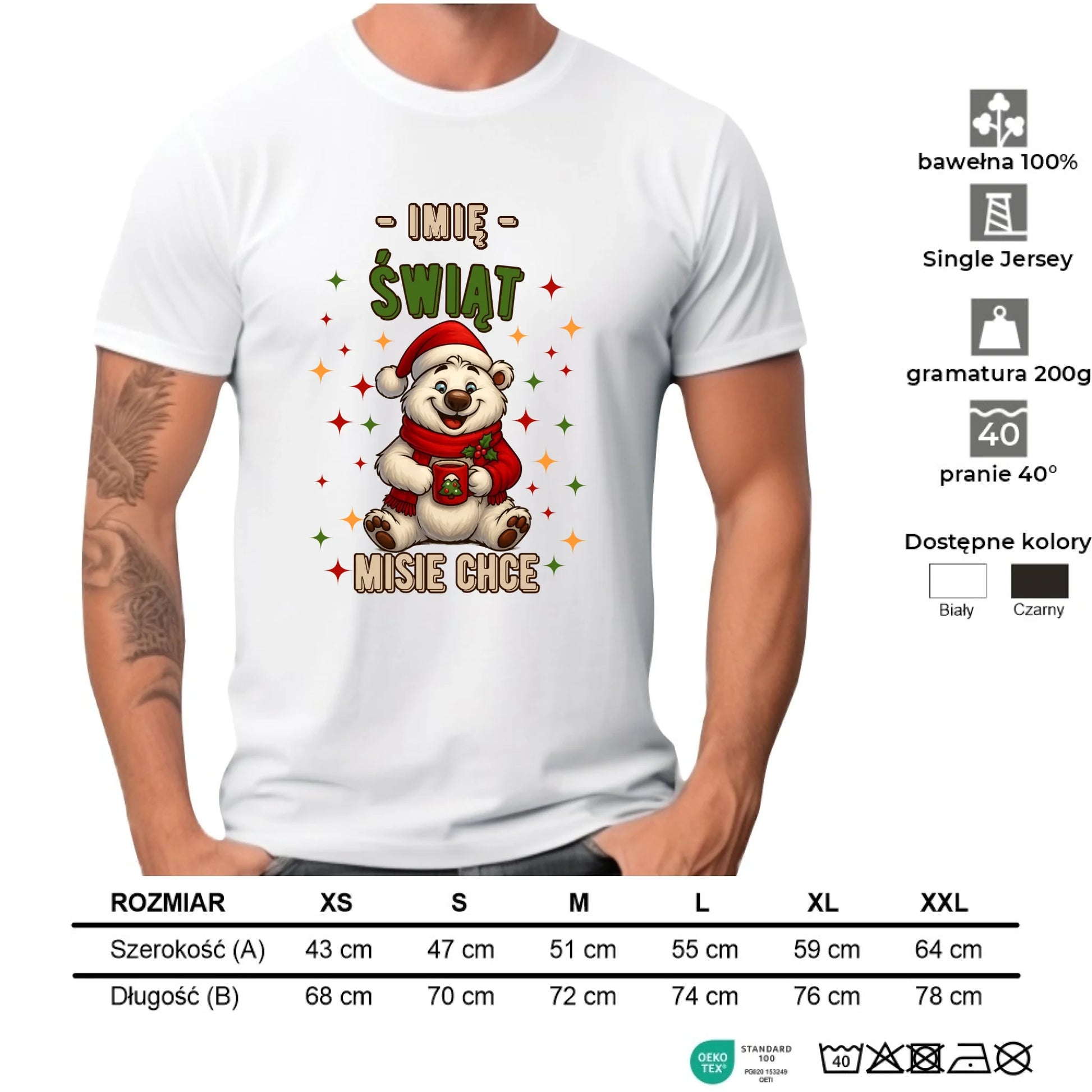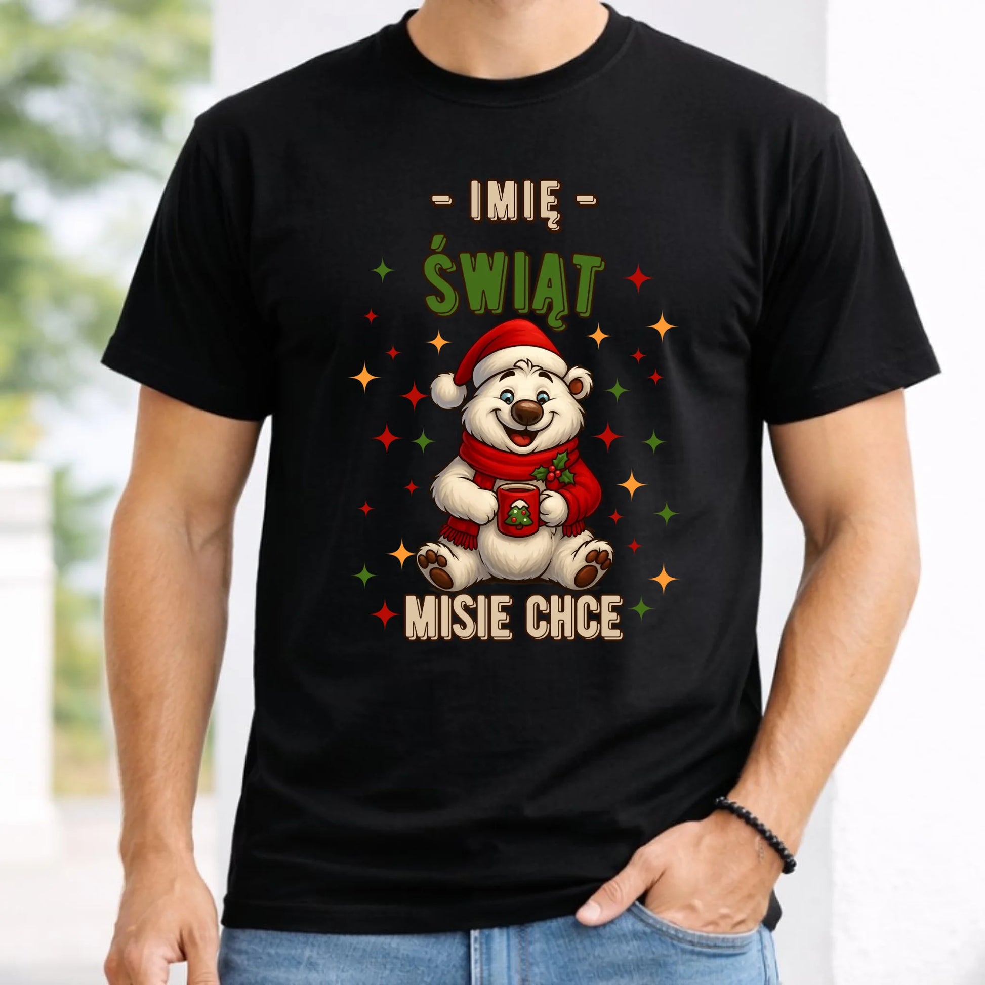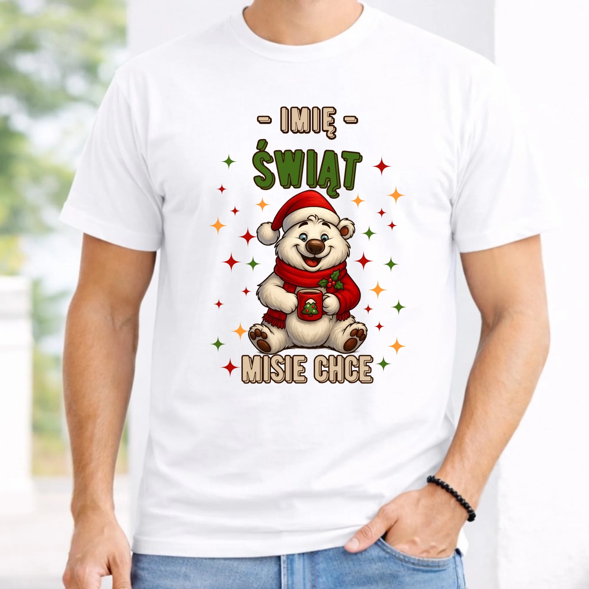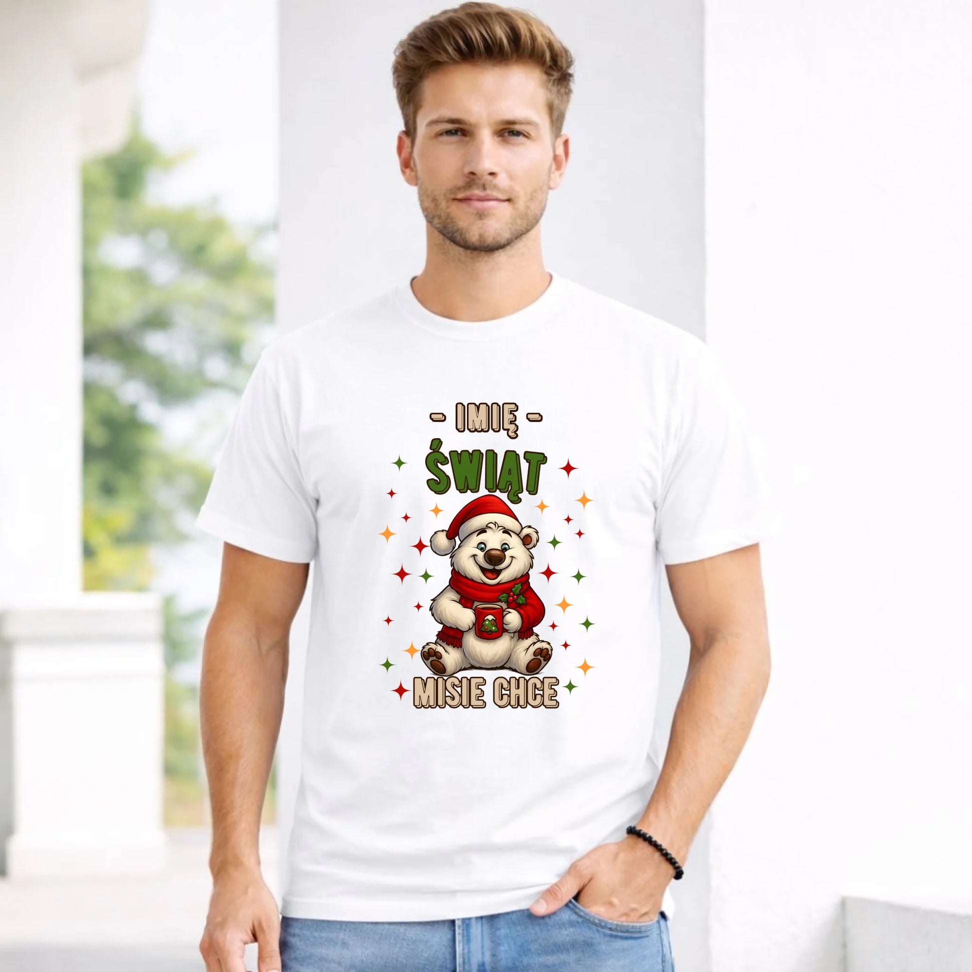 Koszulka męska świąteczna - Misiek Świąt misie chce - personalizowana BN86
