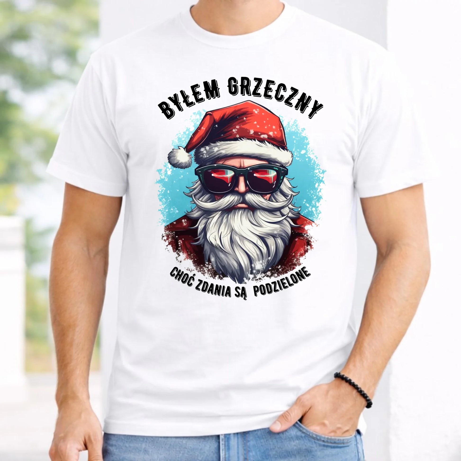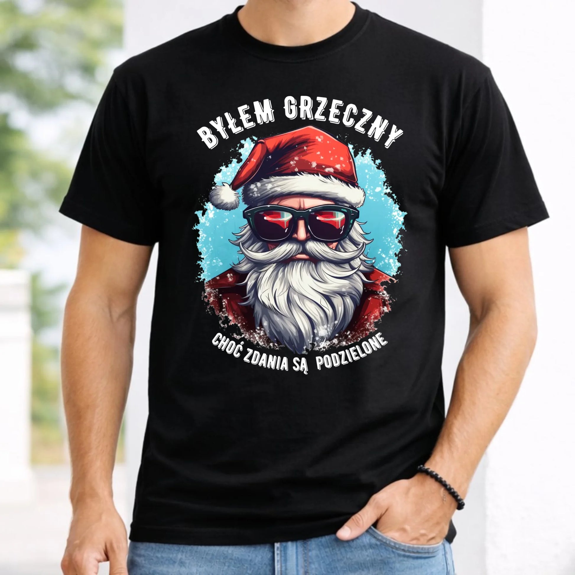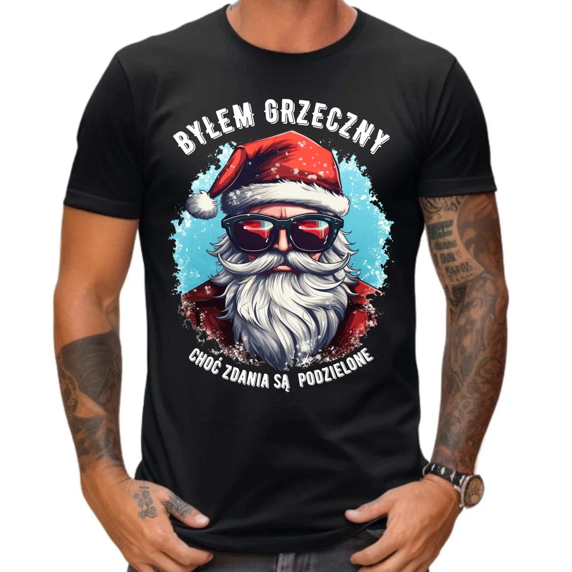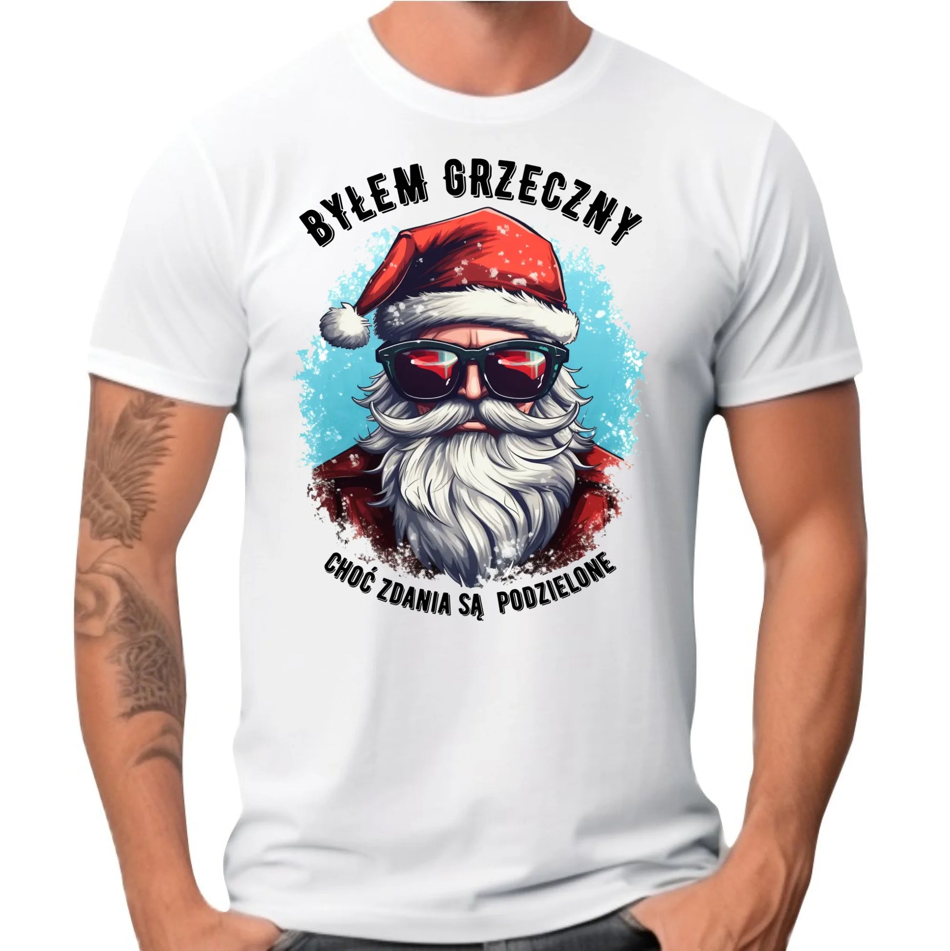Koszulka męska świąteczna z Mikołajem - Byłem grzeczny, choć zdania są podzielone BN126
