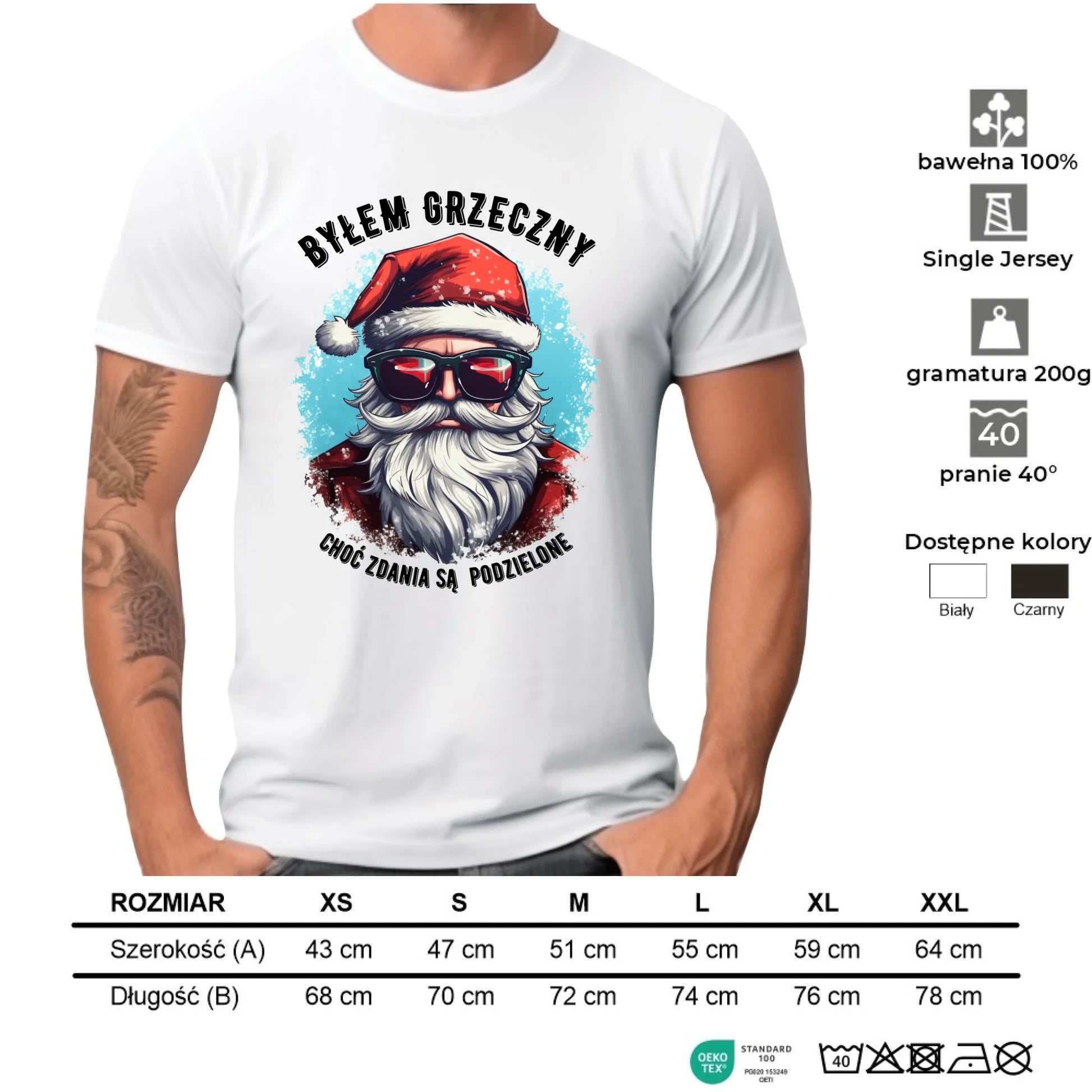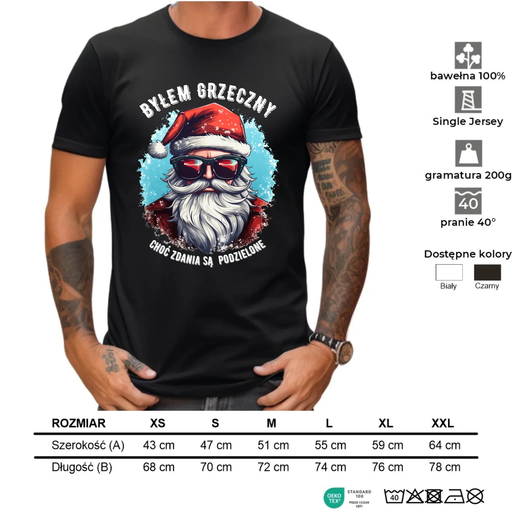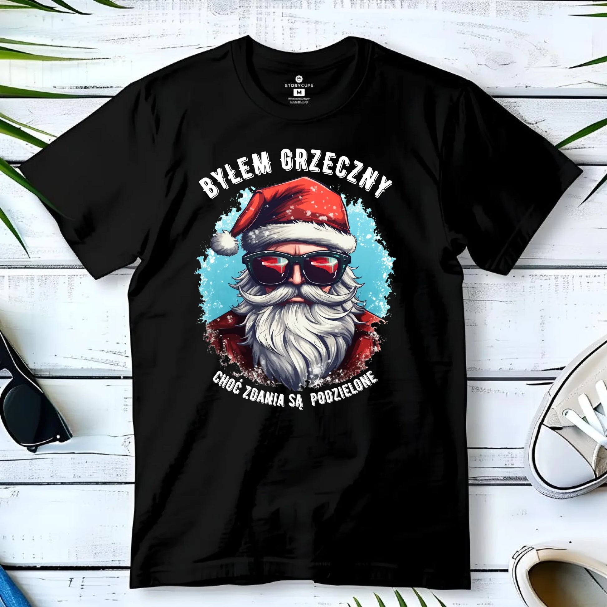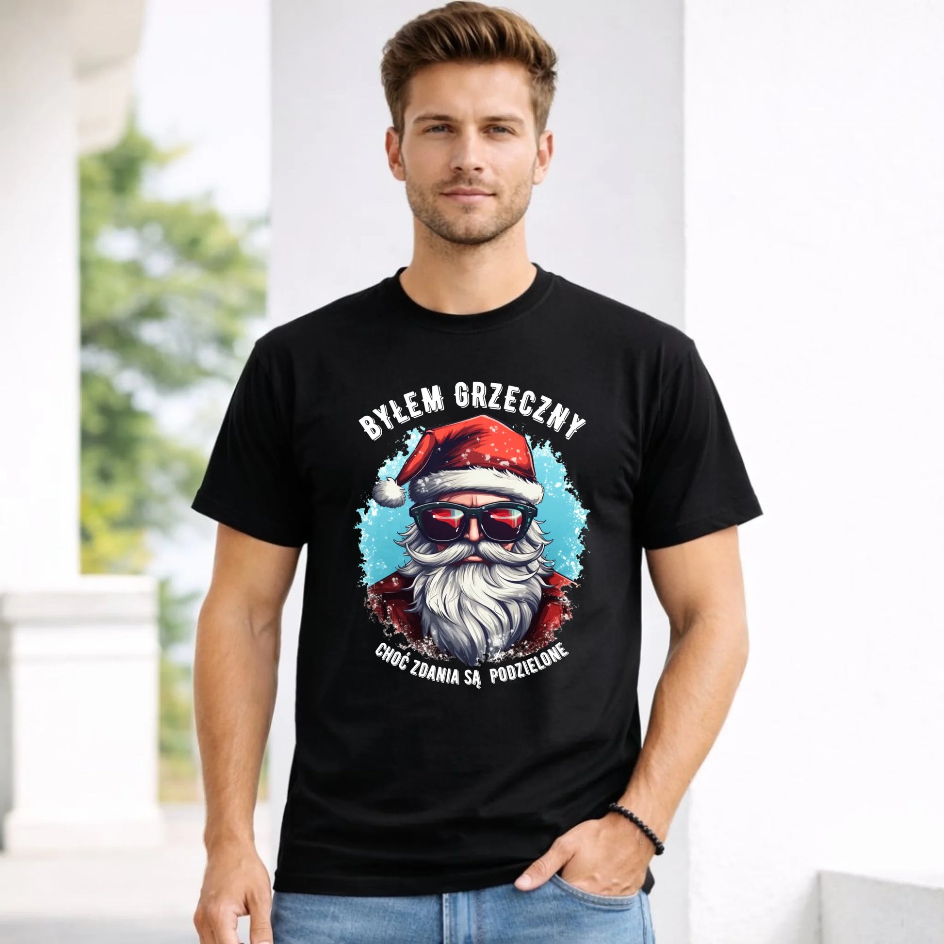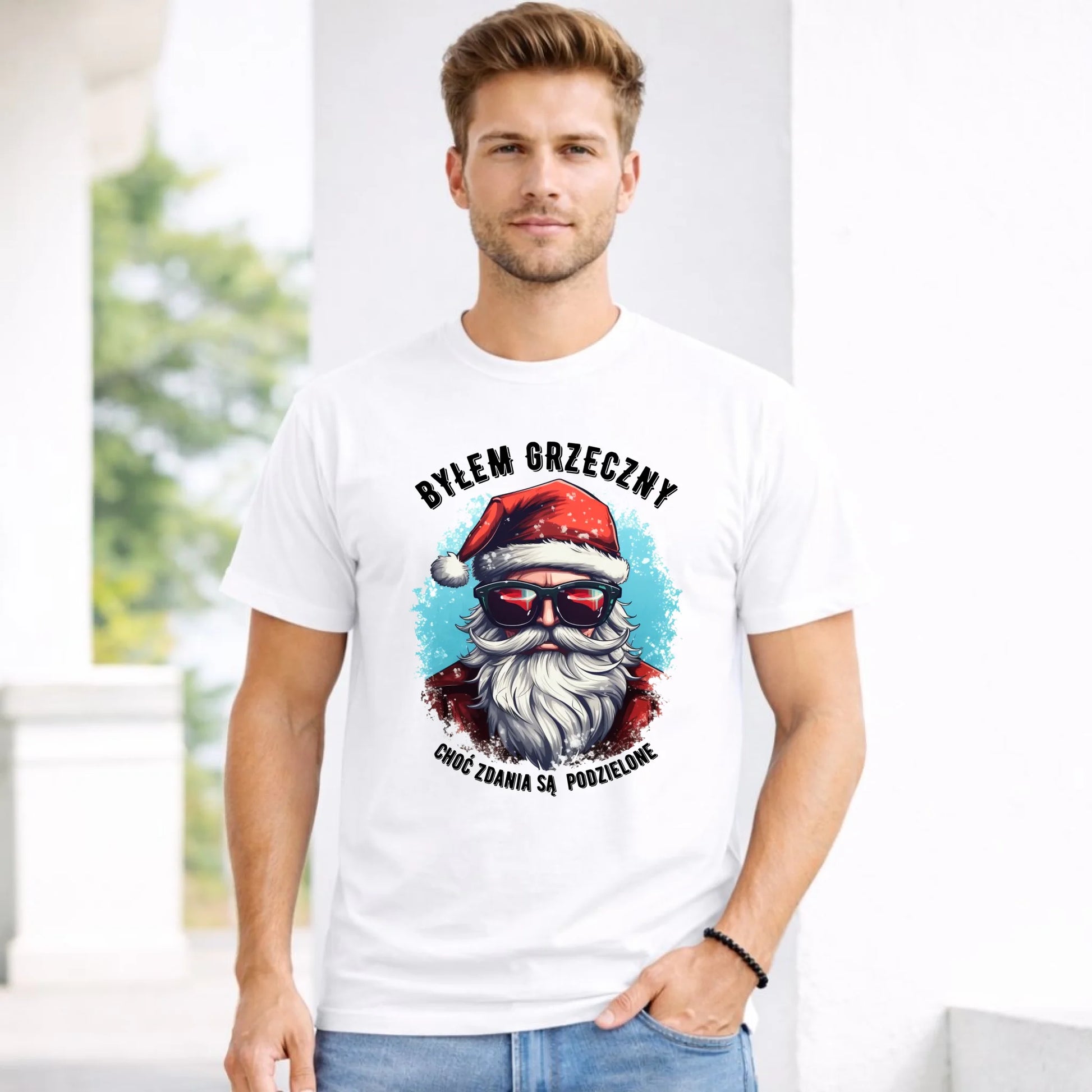 Koszulka męska świąteczna z Mikołajem - Byłem grzeczny, choć zdania są podzielone BN126
