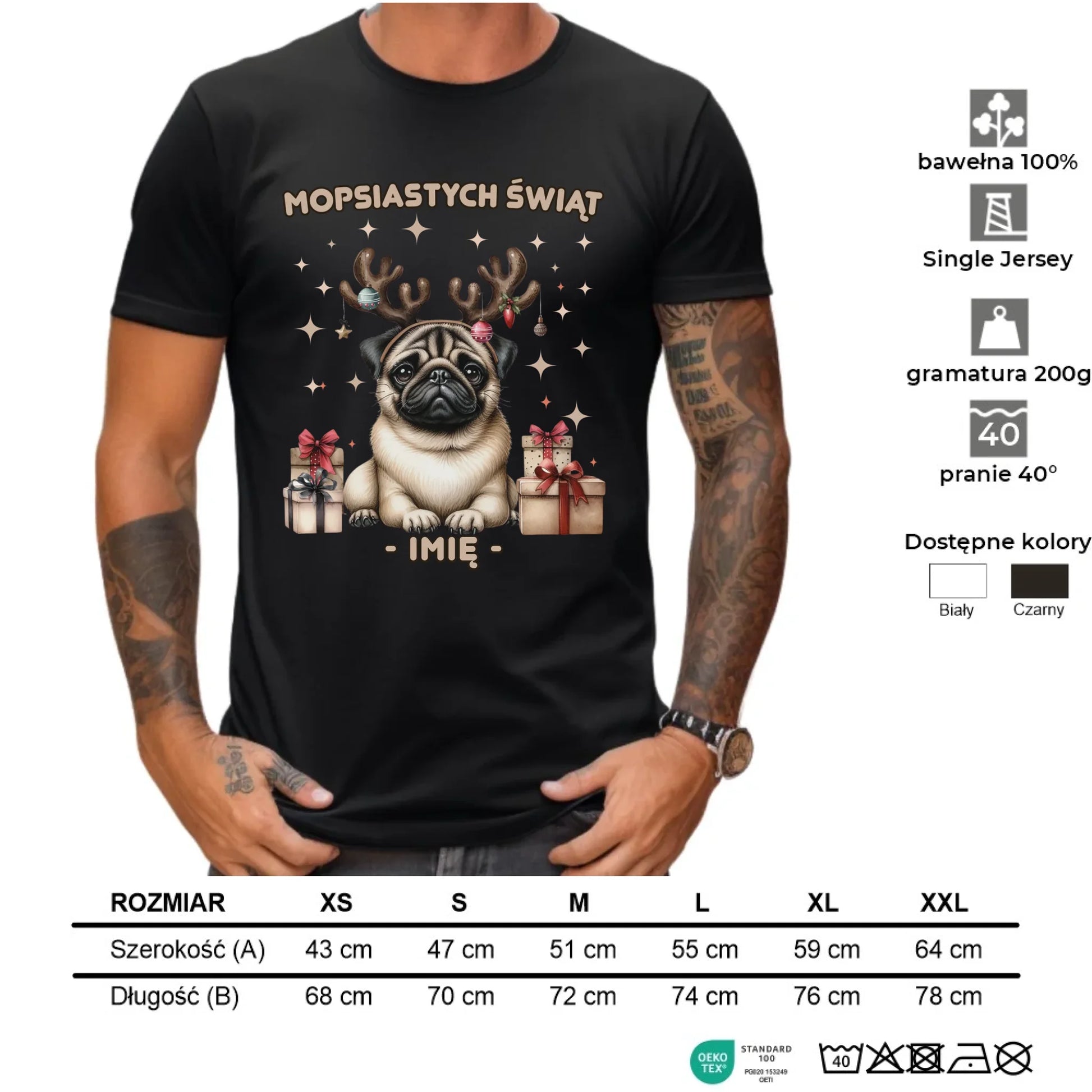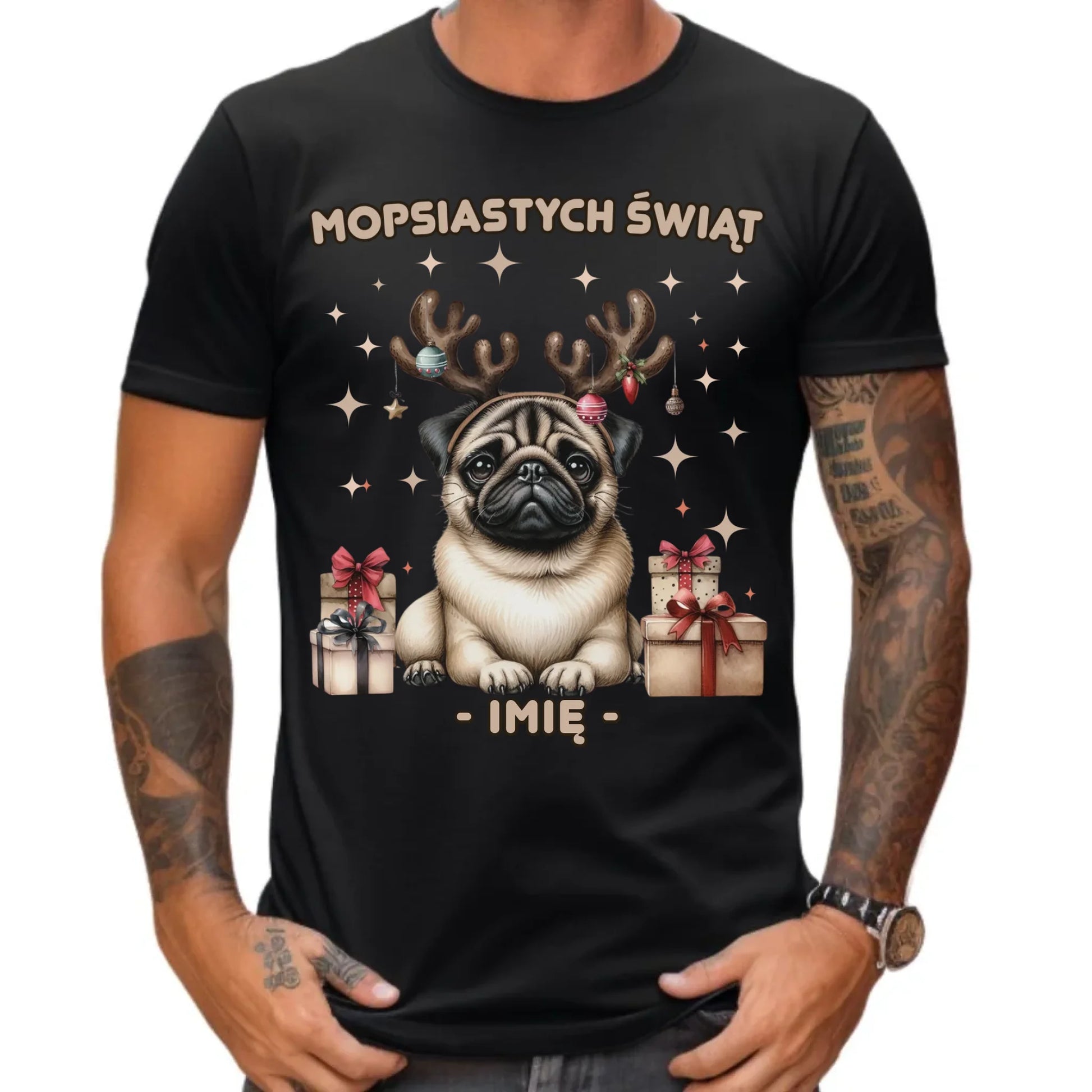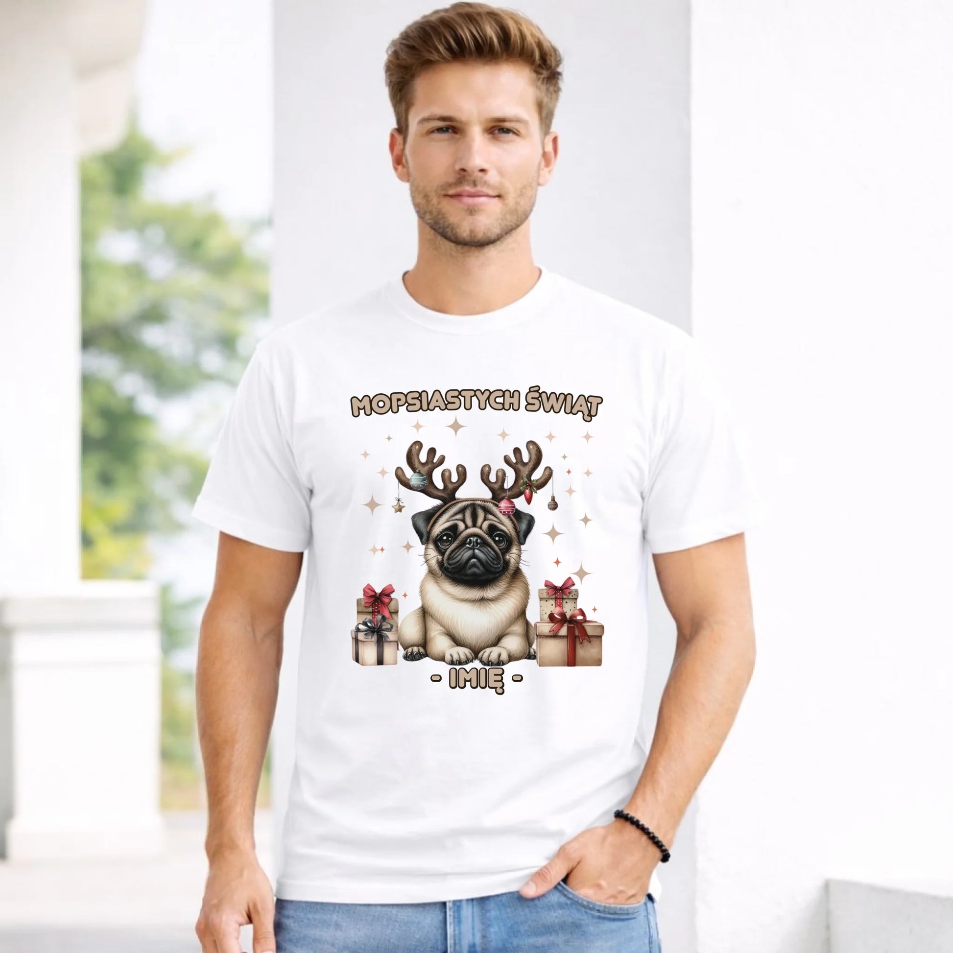 Koszulka męska świąteczna - Mops Mopsiastych świąt - personalizowana BN91