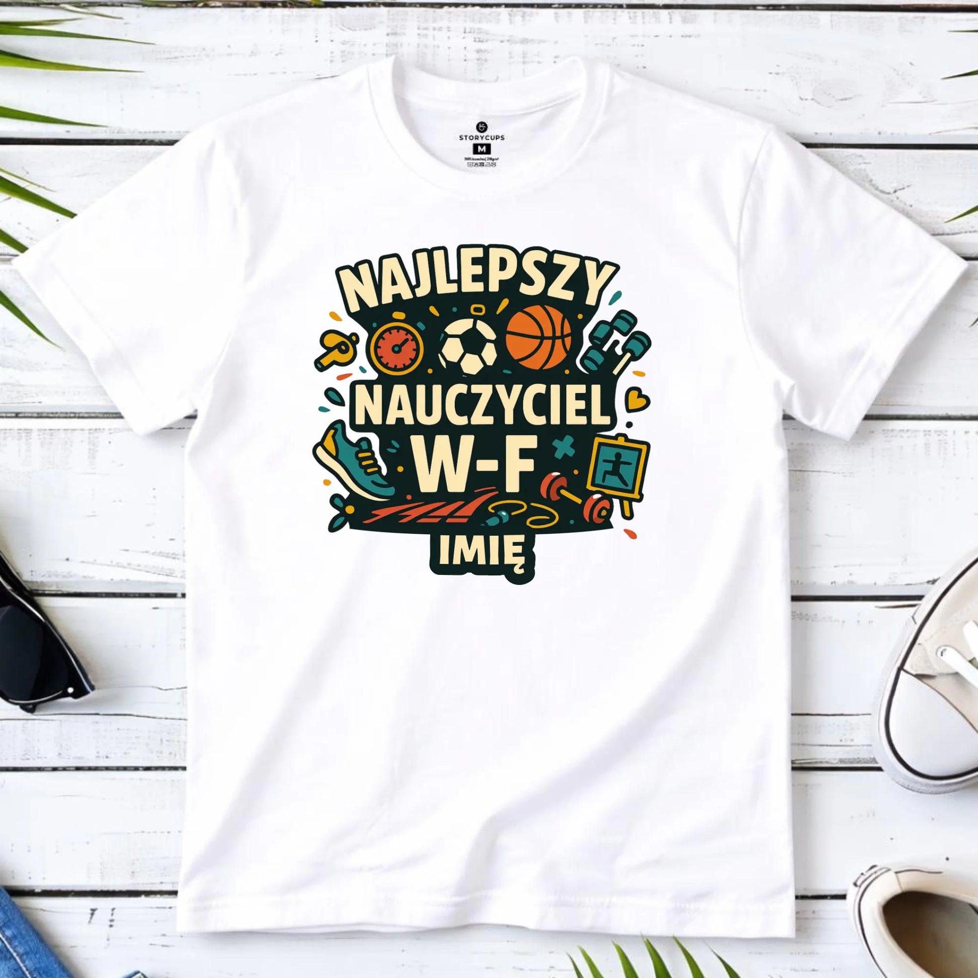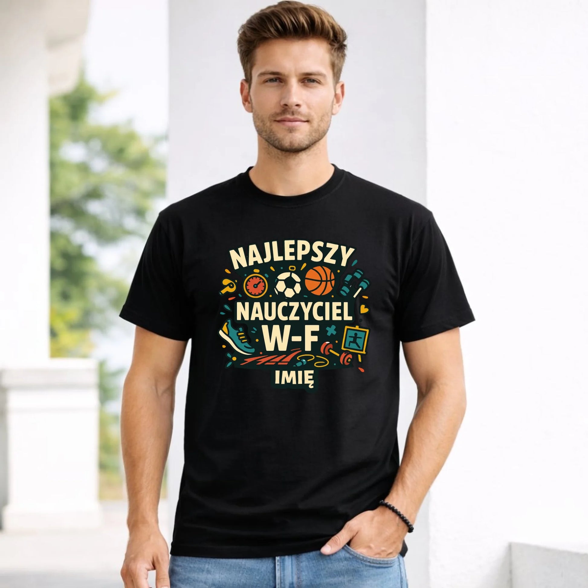Koszulka męska dla nauczyciela wychowania fizycznego - Najlepszy Nauczyciel W-F - personalizowana N50