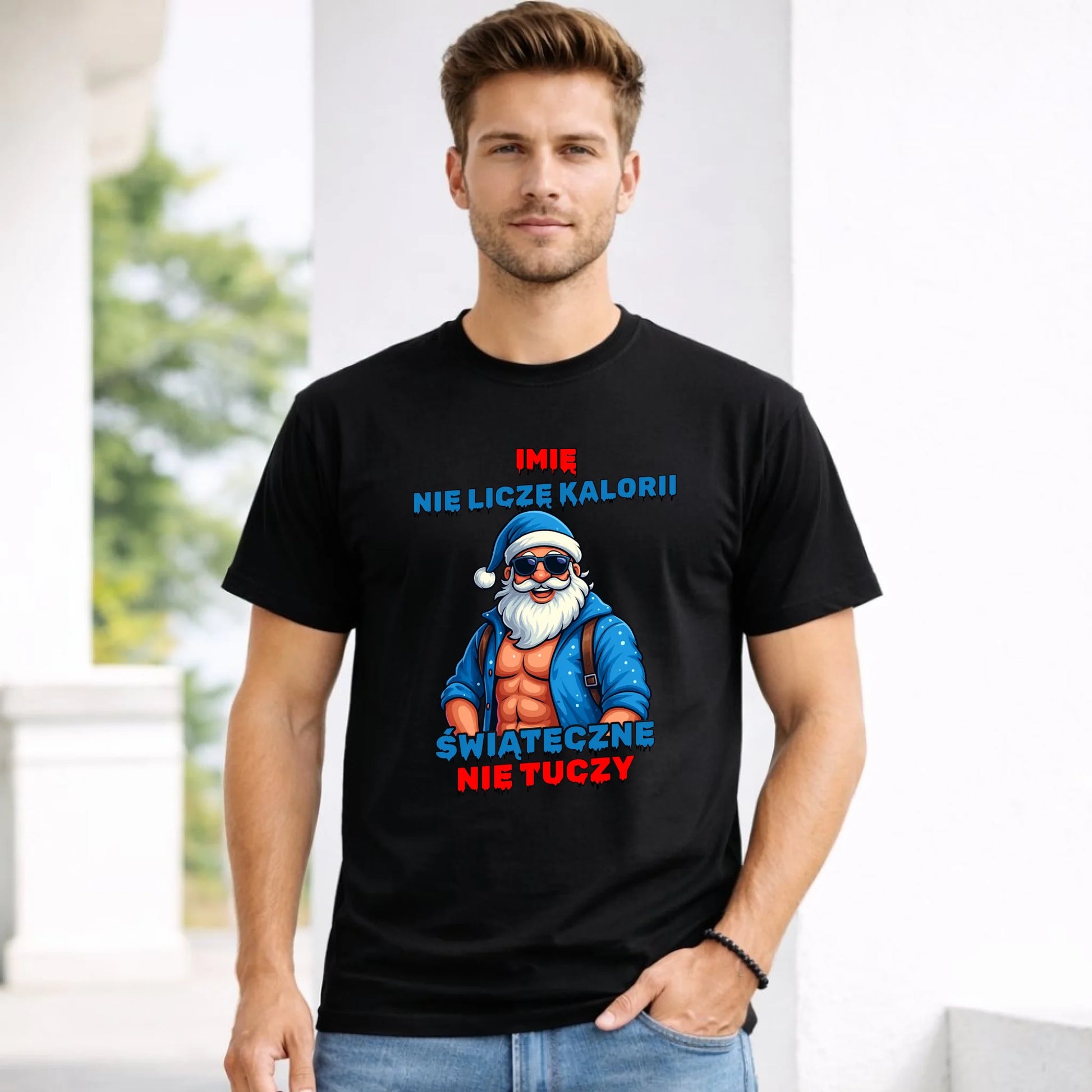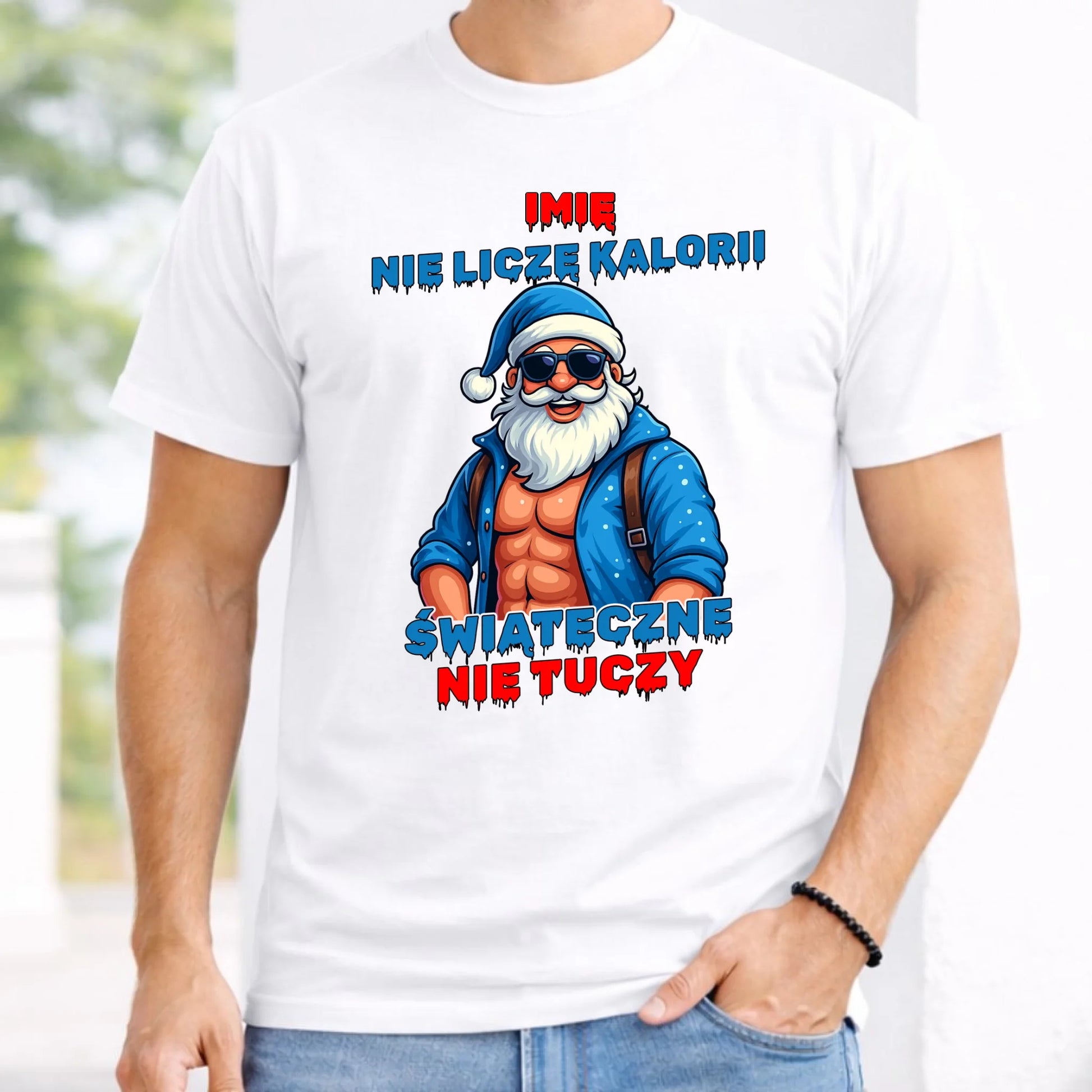 Koszulka męska świąteczna z Mikołajem - Świąteczne nie tuczy - personalizowana BN118