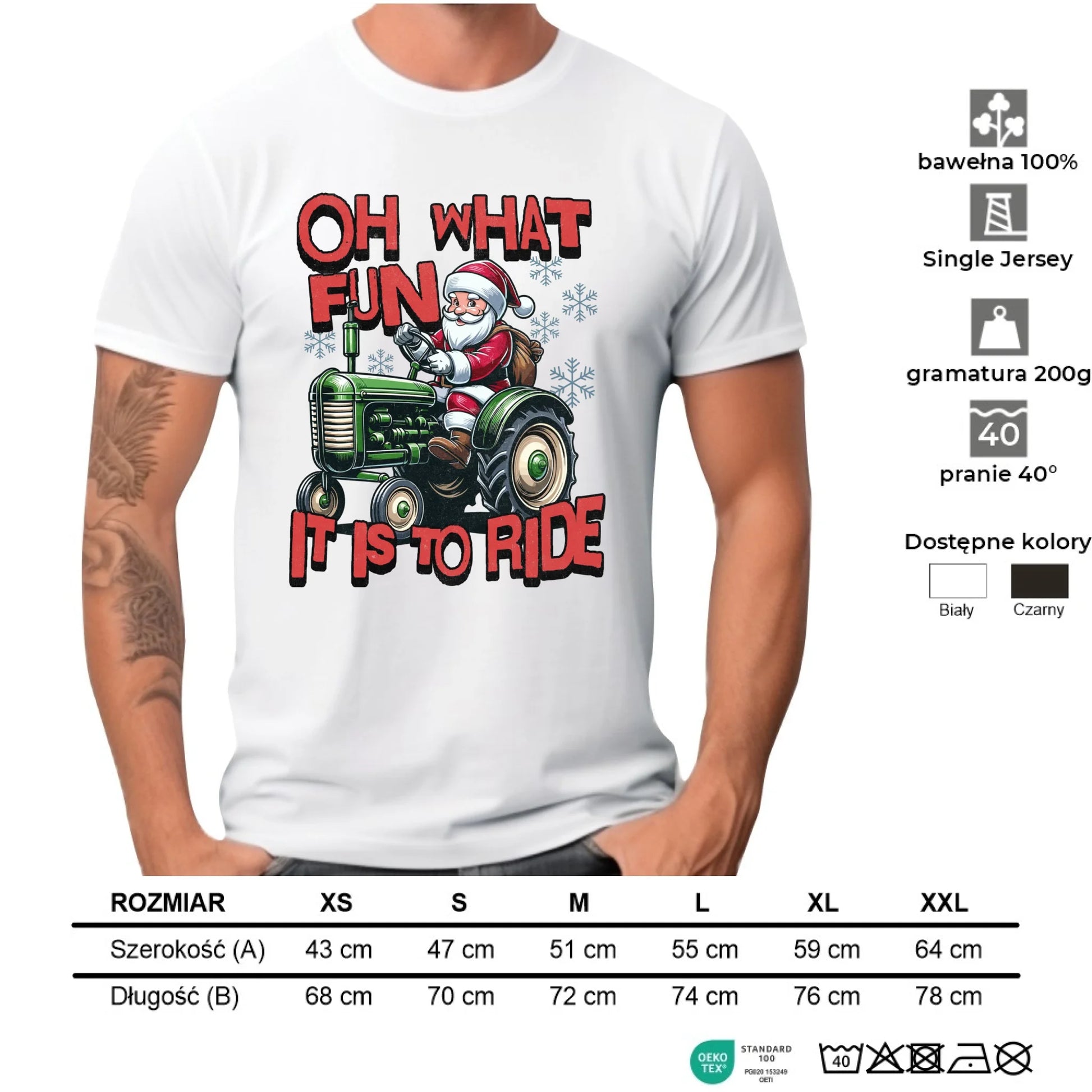 Koszulka męska świąteczna - Mikołaj na traktorze - Oh what fun BN48