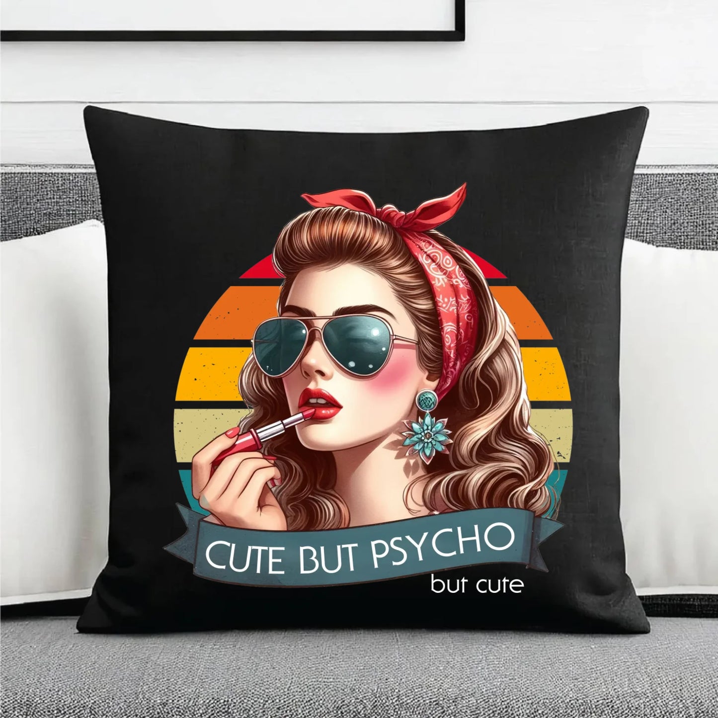 Poduszka dekoracyjna – Cute but psycho - w stylu retro DZ09