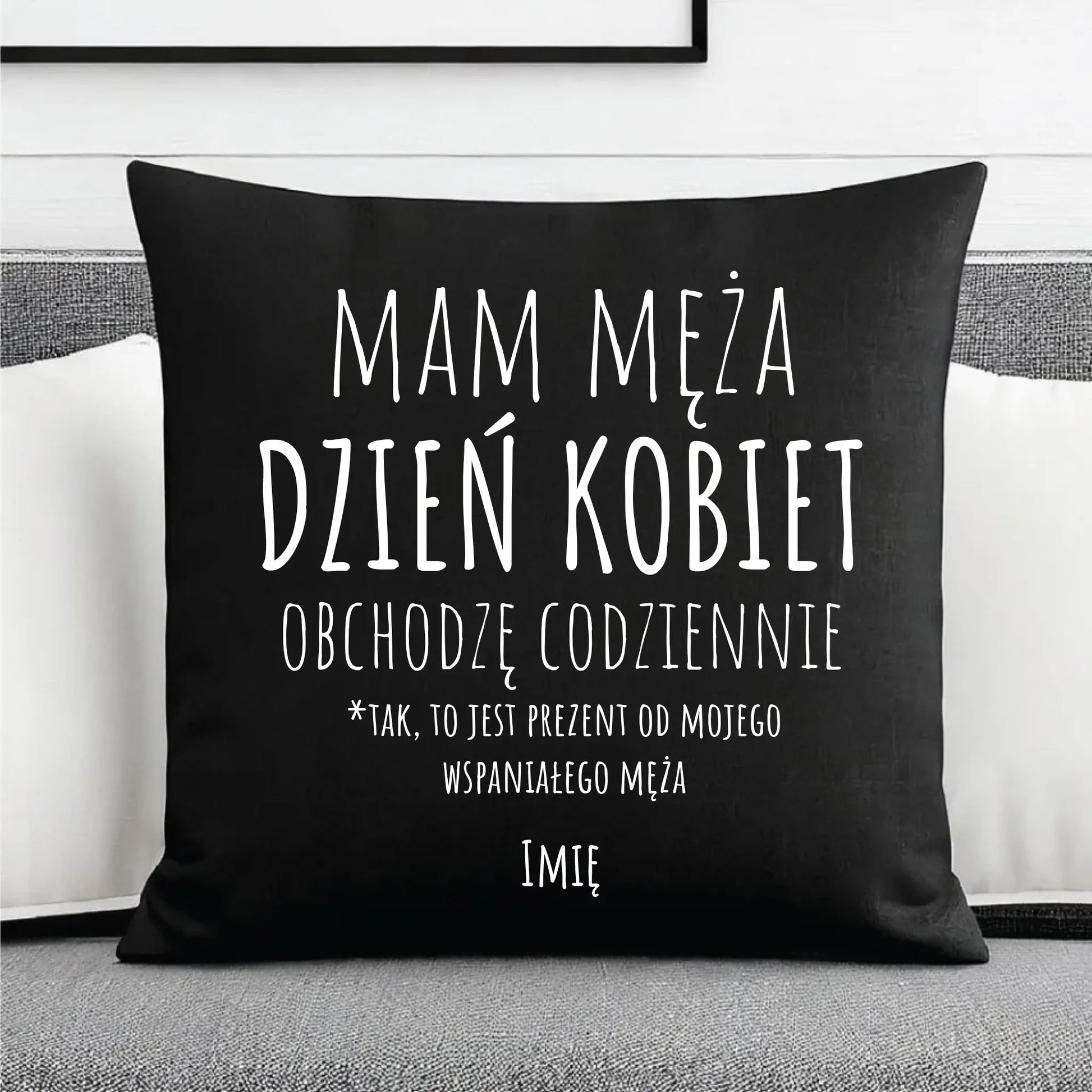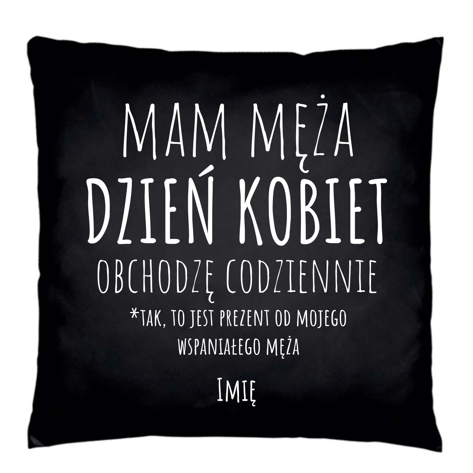 Poduszka dekoracyjna - prezent dla żony - Mam męża Dzień Kobiet obchodzę codziennie - personalizowana Ż01