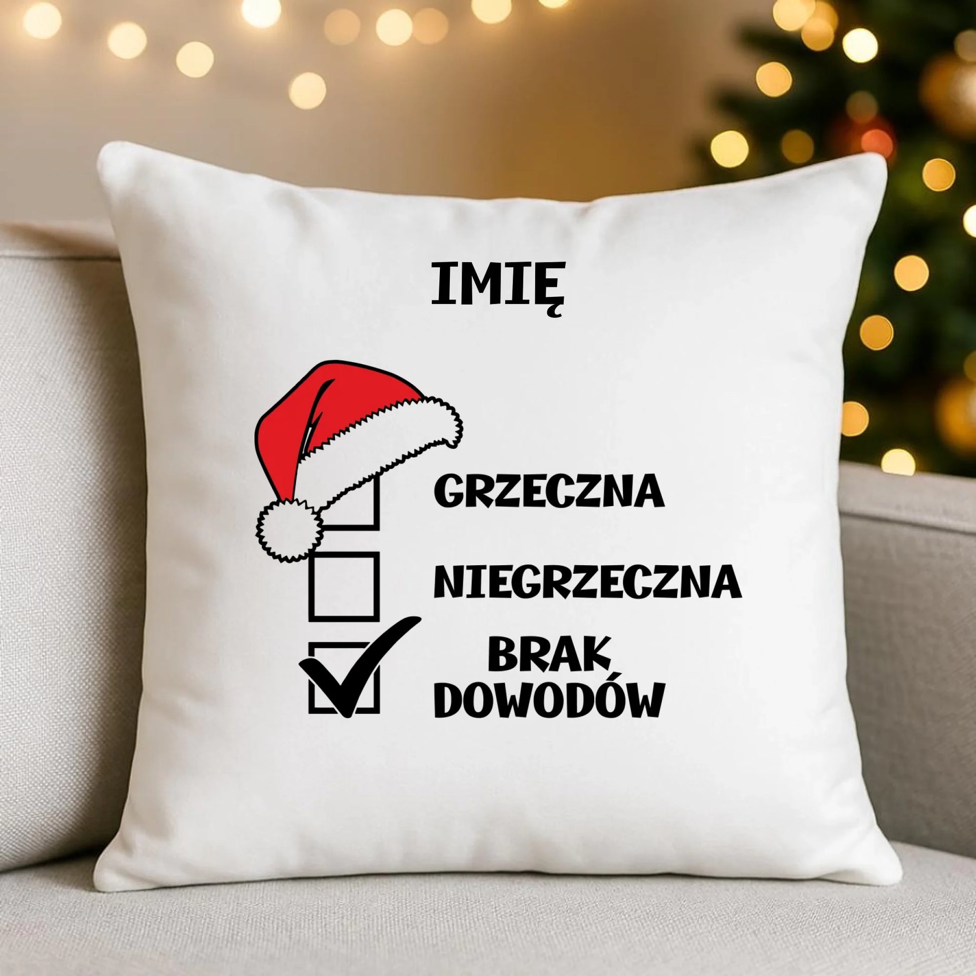 Poduszka świąteczna - Grzeczna niegrzeczna brak dowodów - personalizowana BN147
