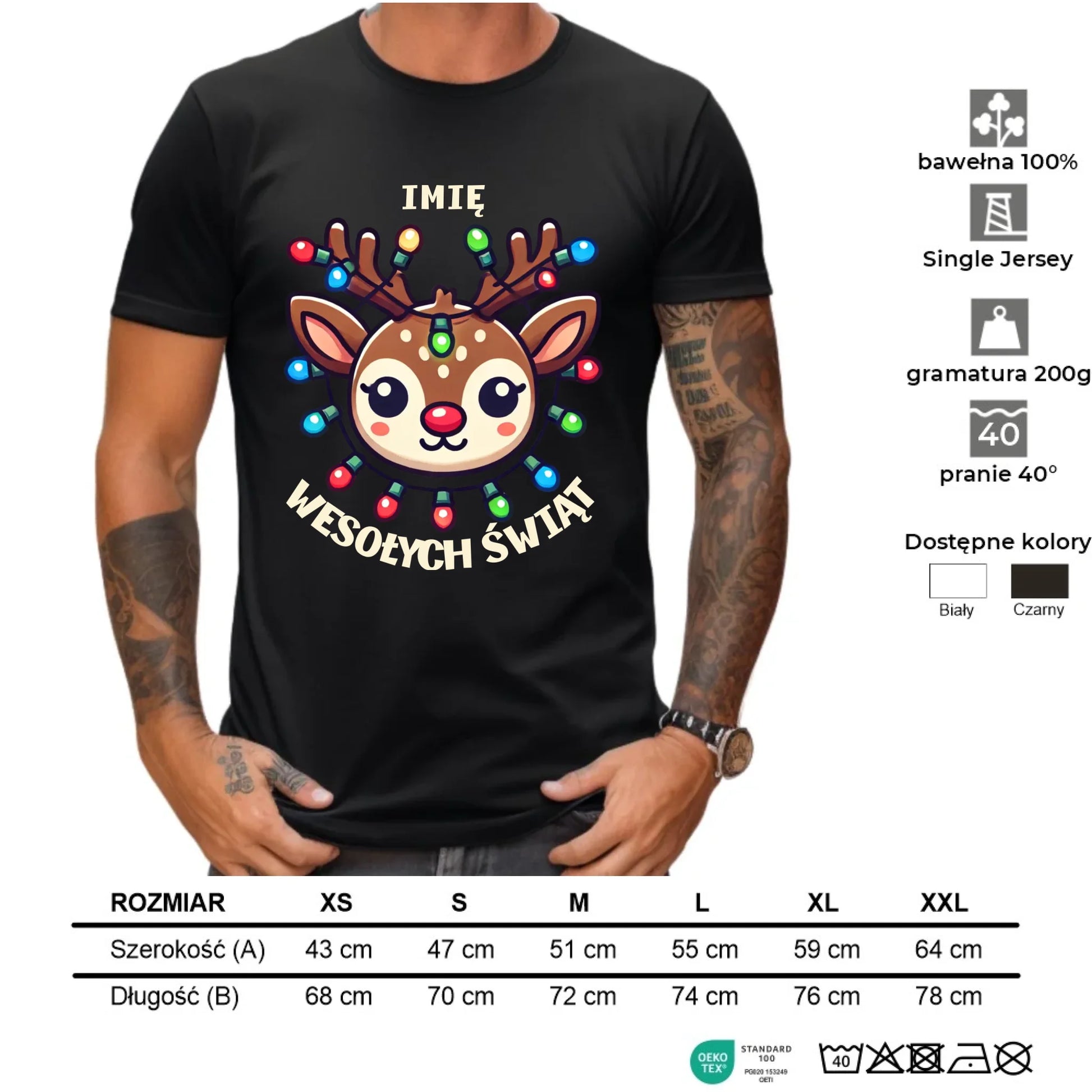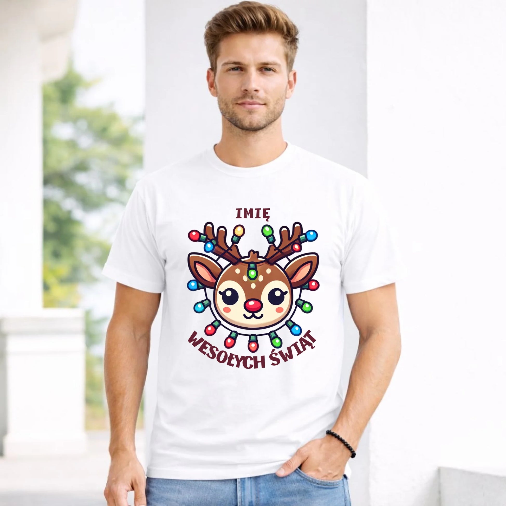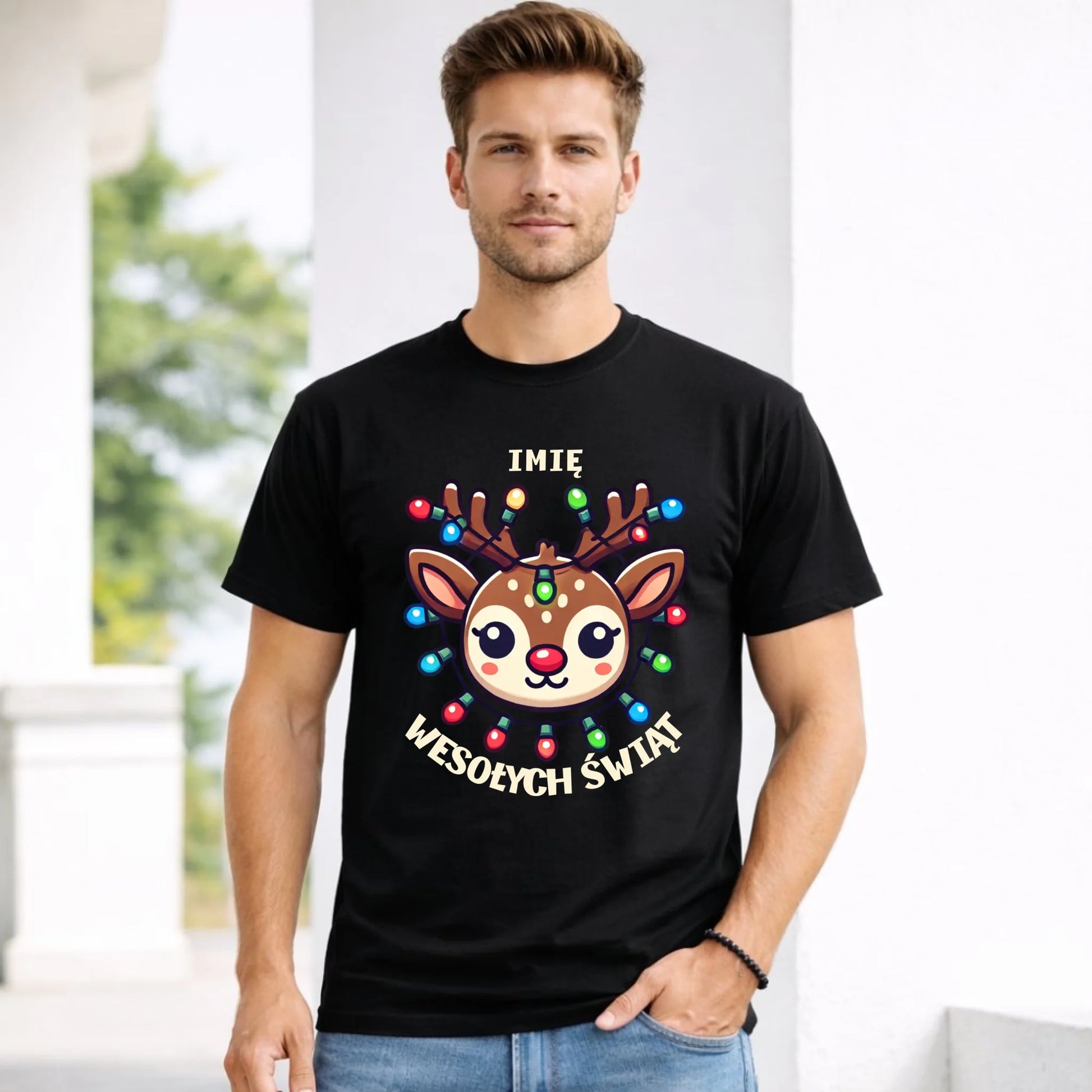 Koszulka męska świąteczna - Renifer Wesołych Świąt - personalizowana BN72