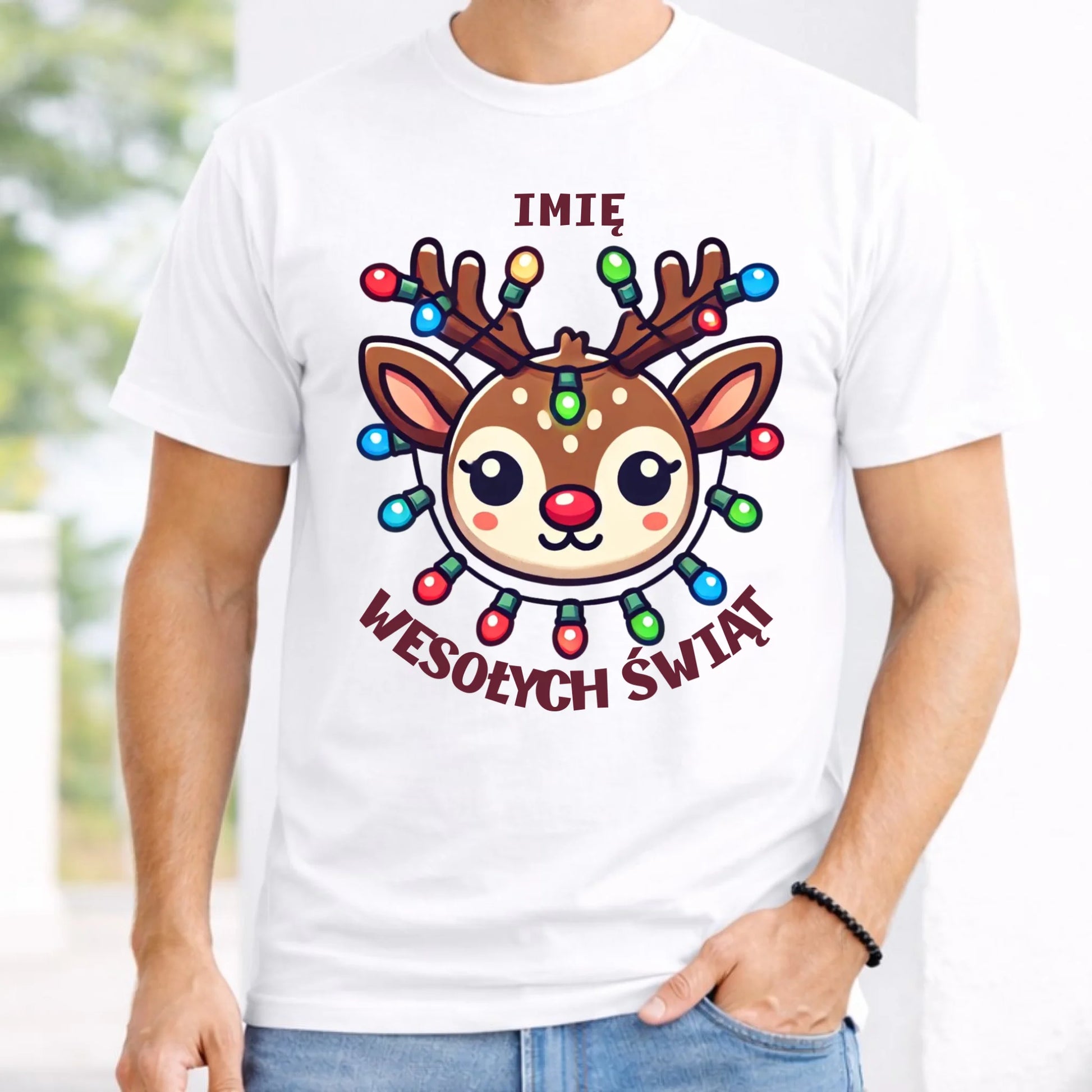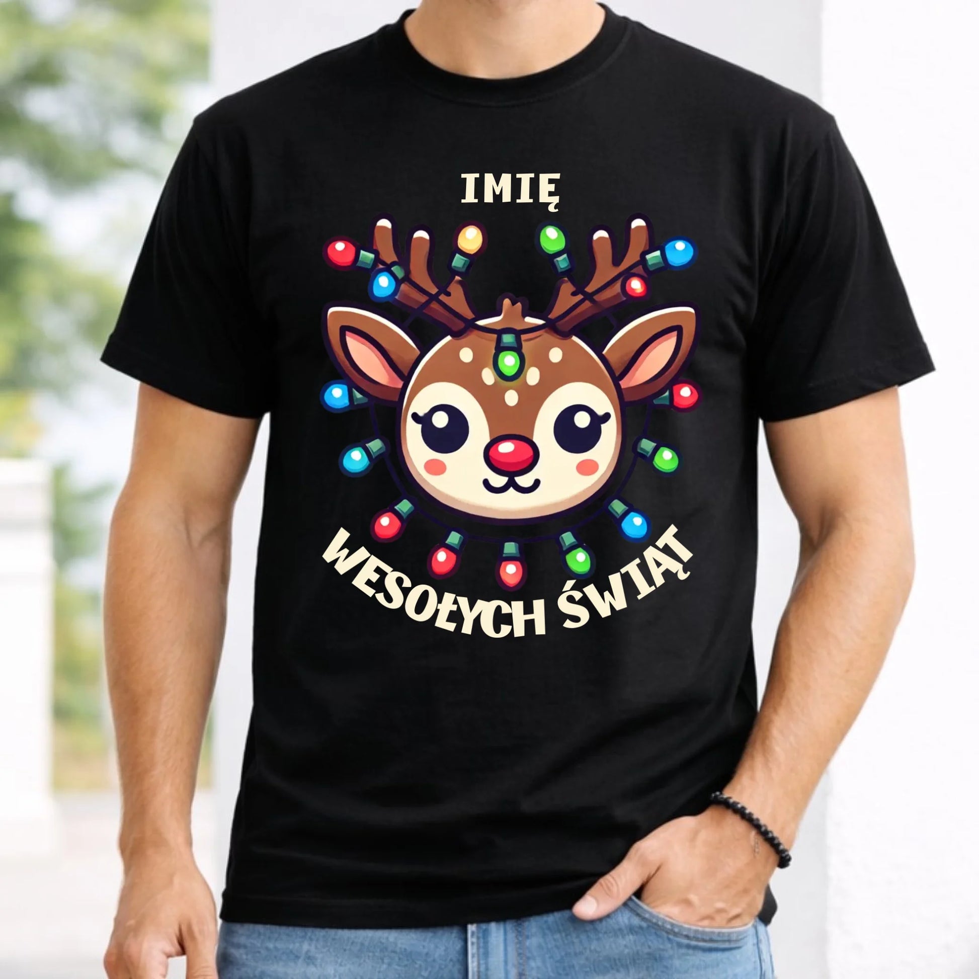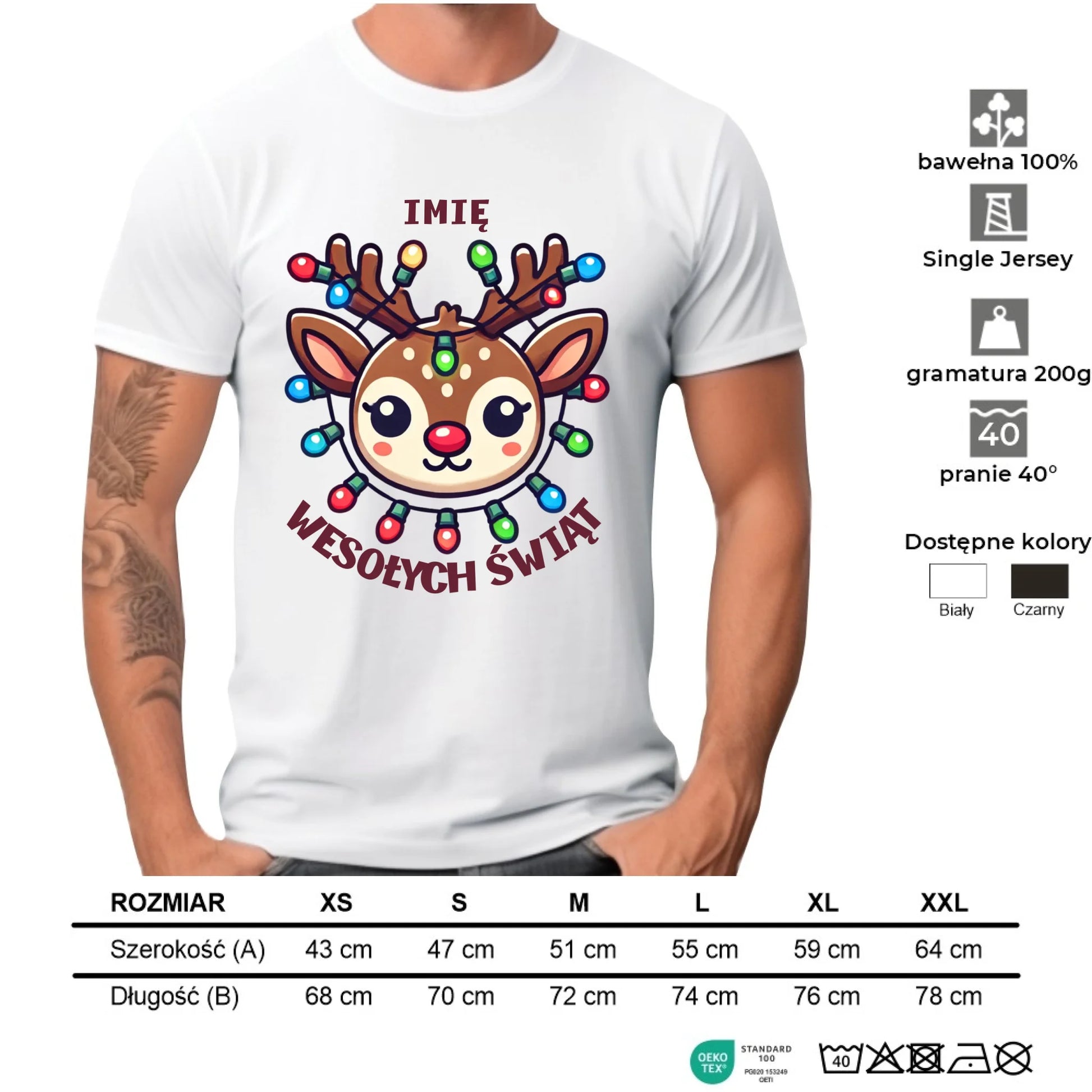 Koszulka męska świąteczna - Renifer Wesołych Świąt - personalizowana BN72