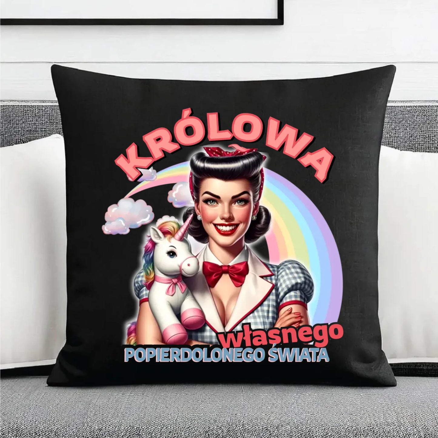 Śmieszna poduszka dekoracyjna retro – Królowa własnego popierd*onego świata - bez cenzury DZ08