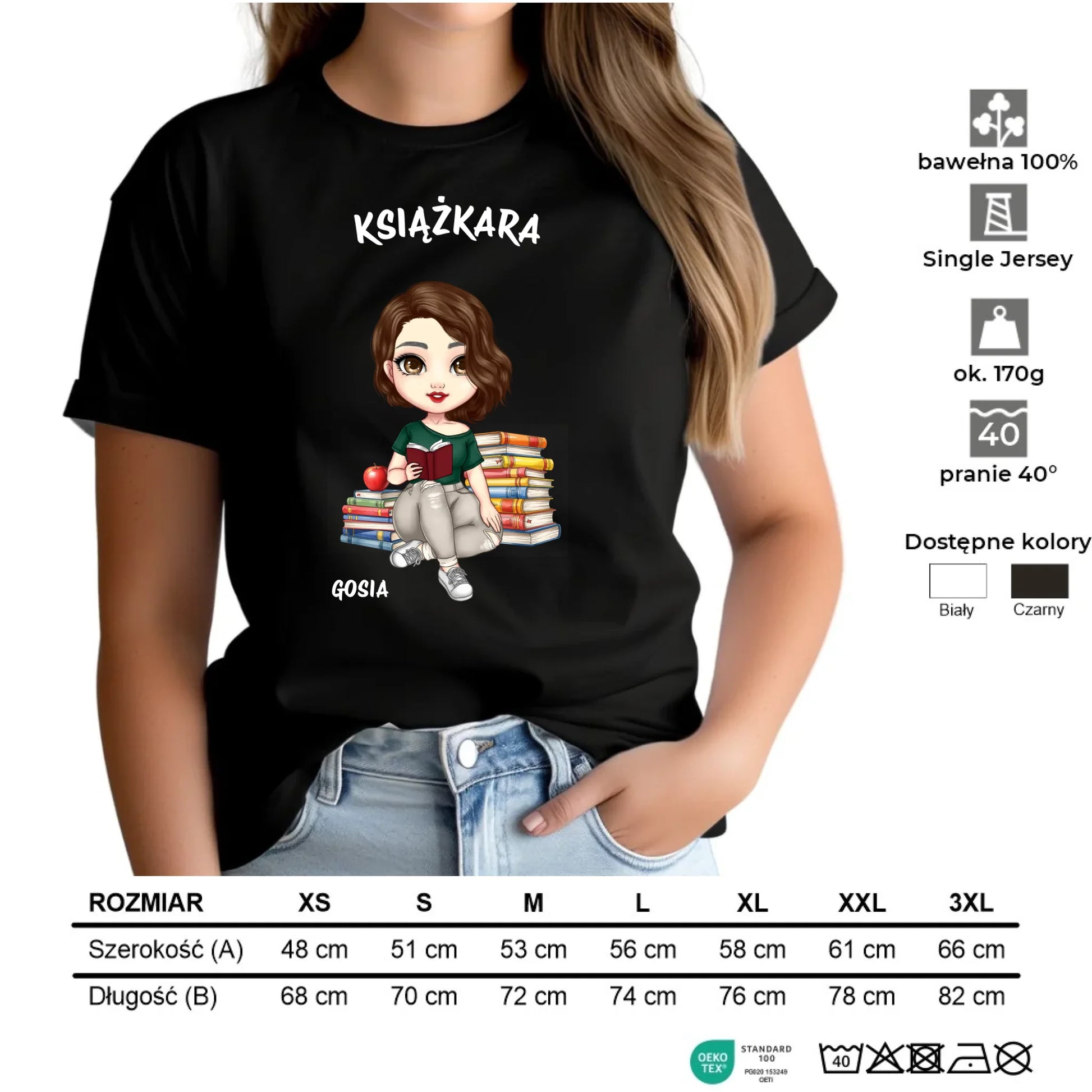 Koszulka damska - Książkara - Prezent dla miłośniczki czytania książek - personalizowana DZ03