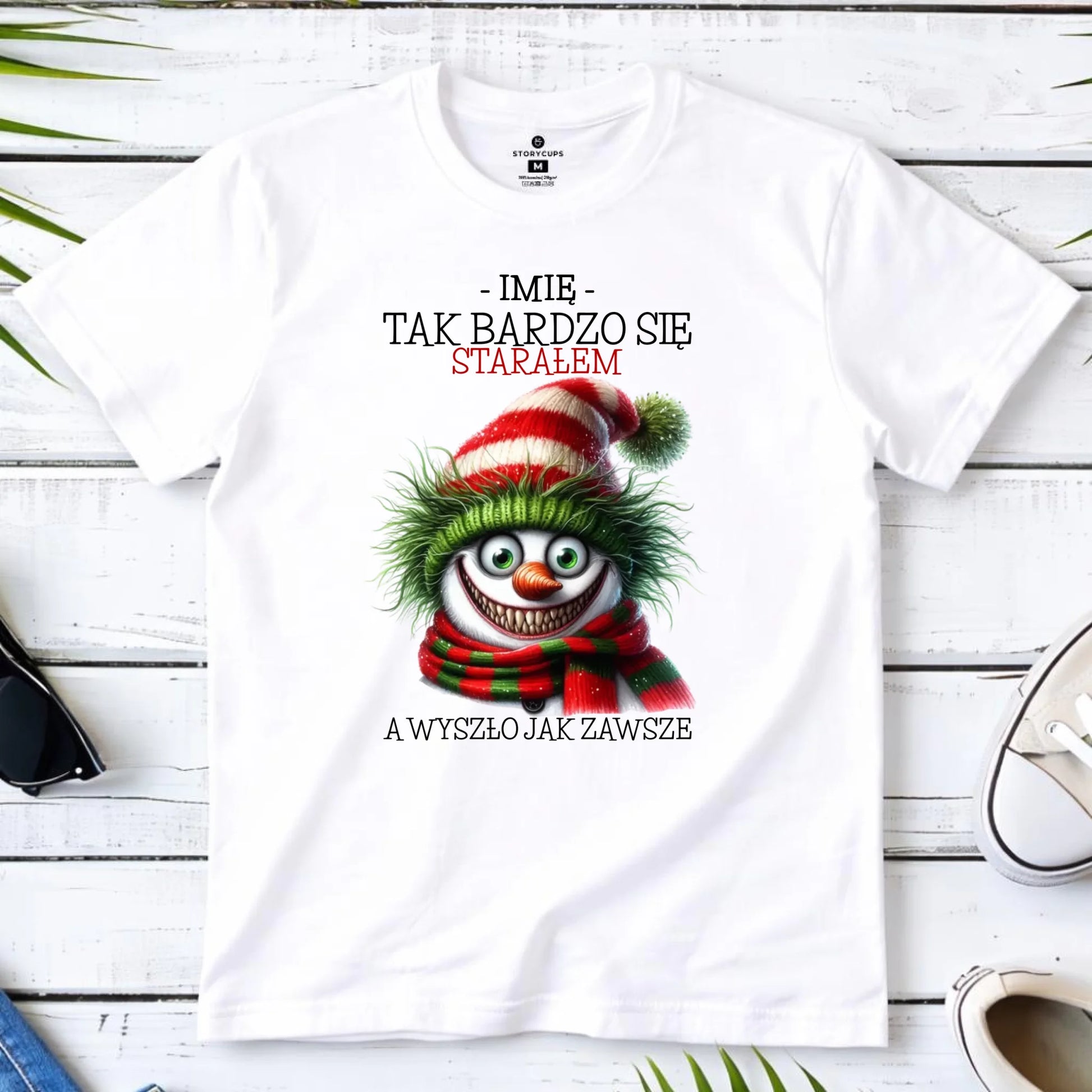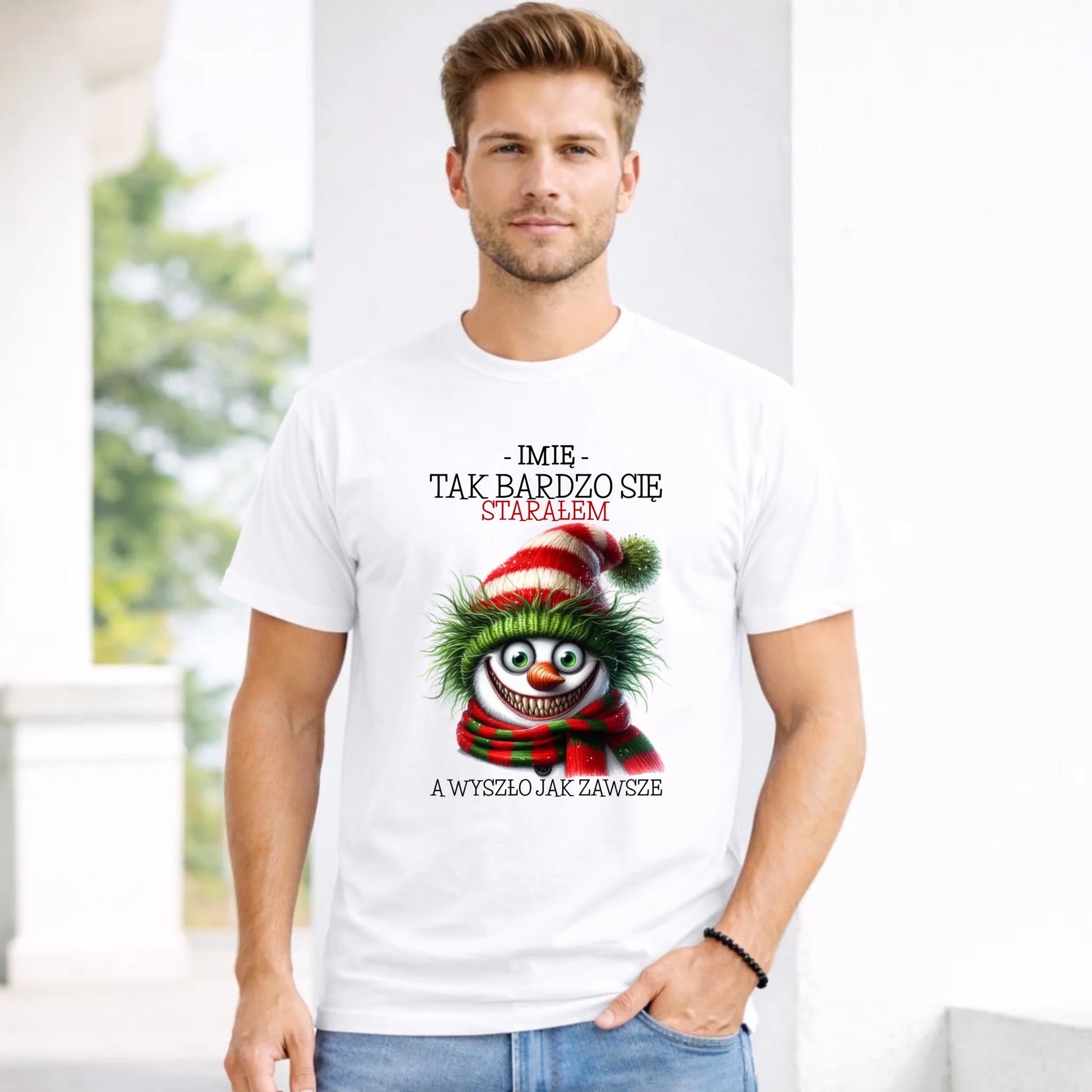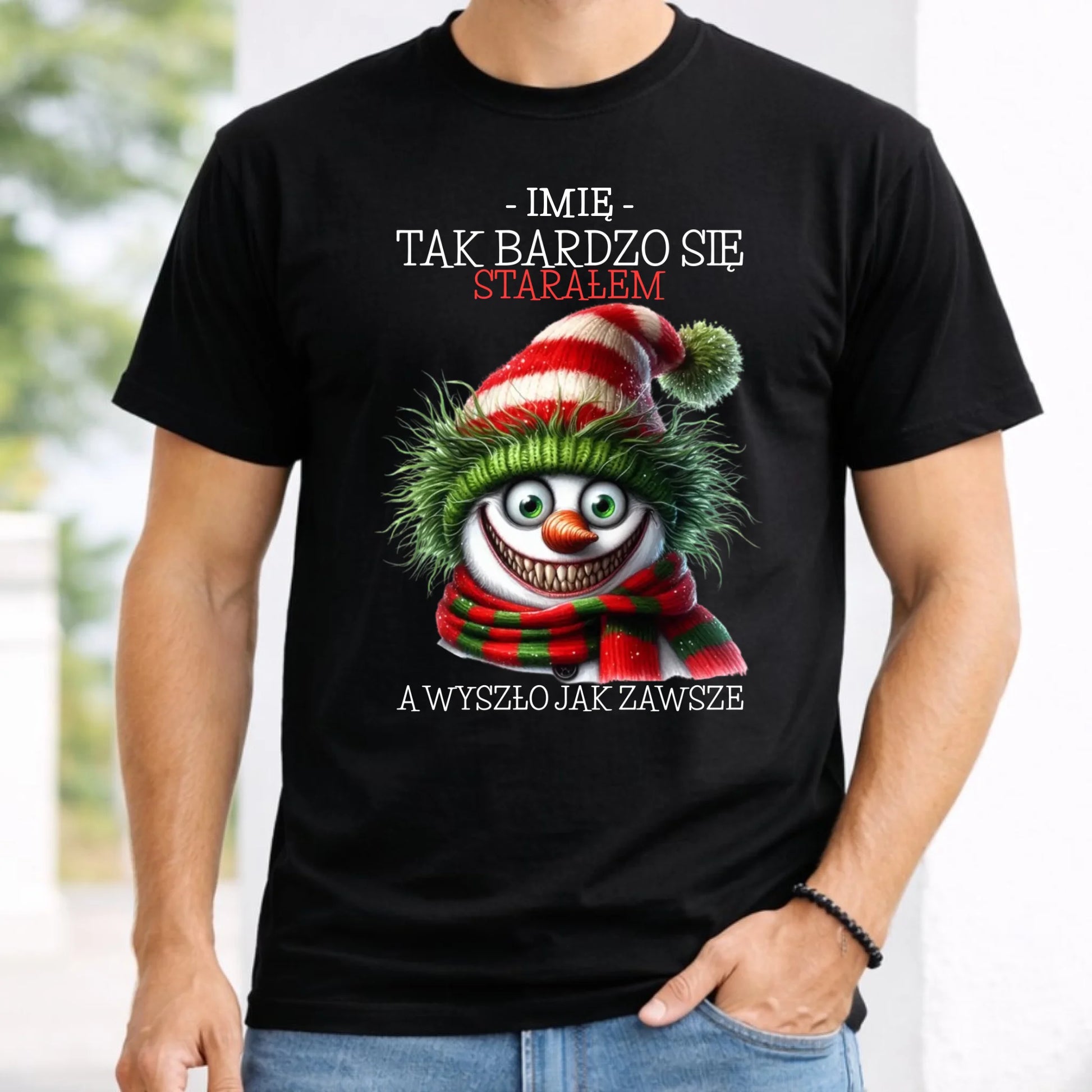 Koszulka męska świąteczna z bałwanem - Tak bardzo się starałem - personalizowana BN120