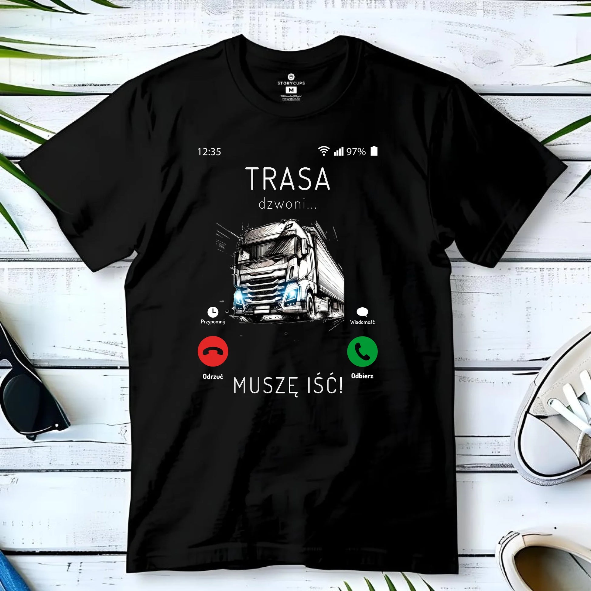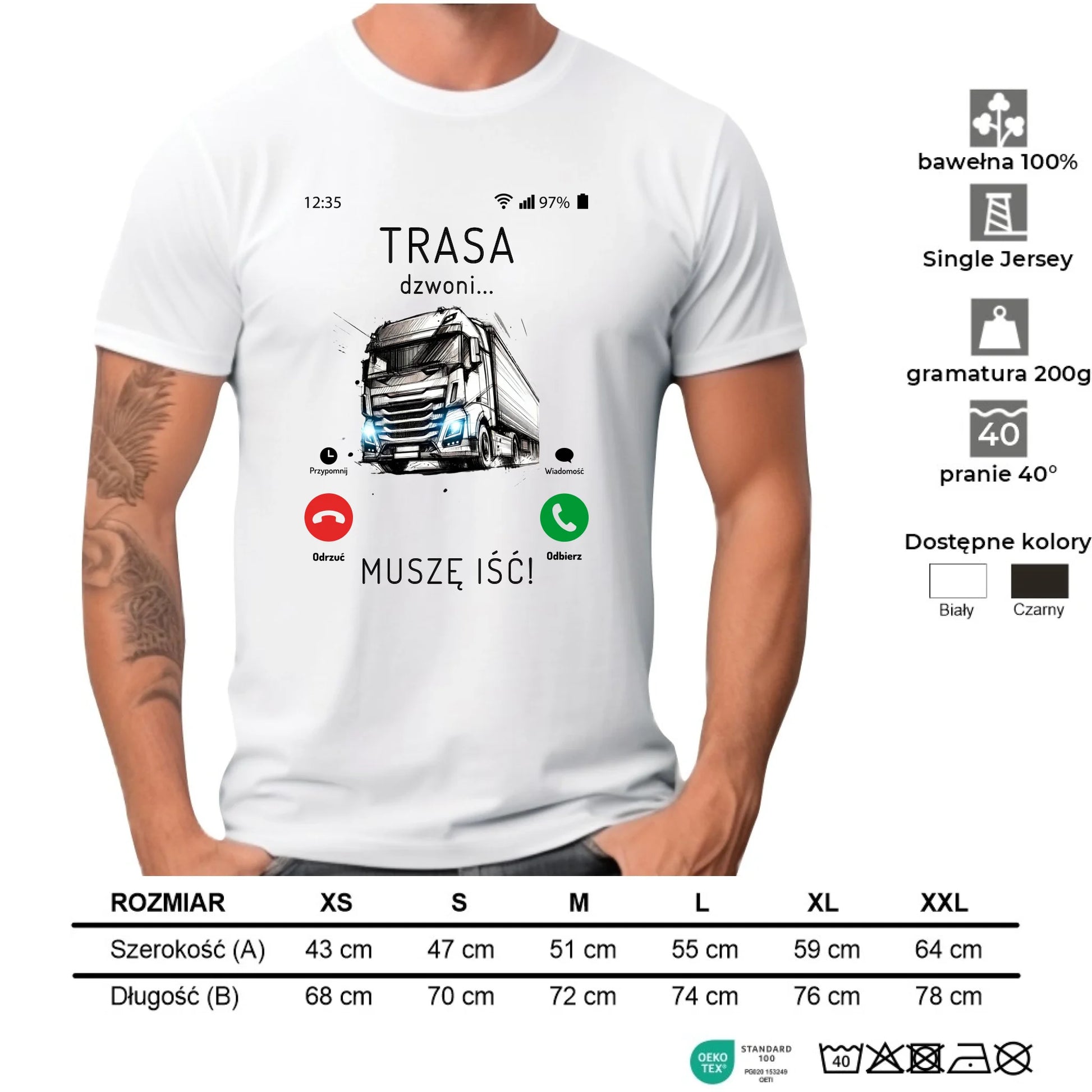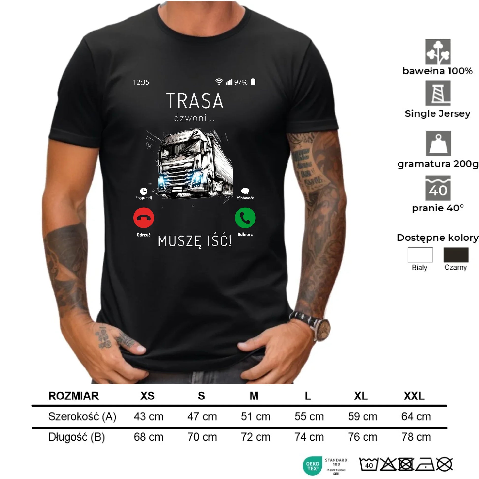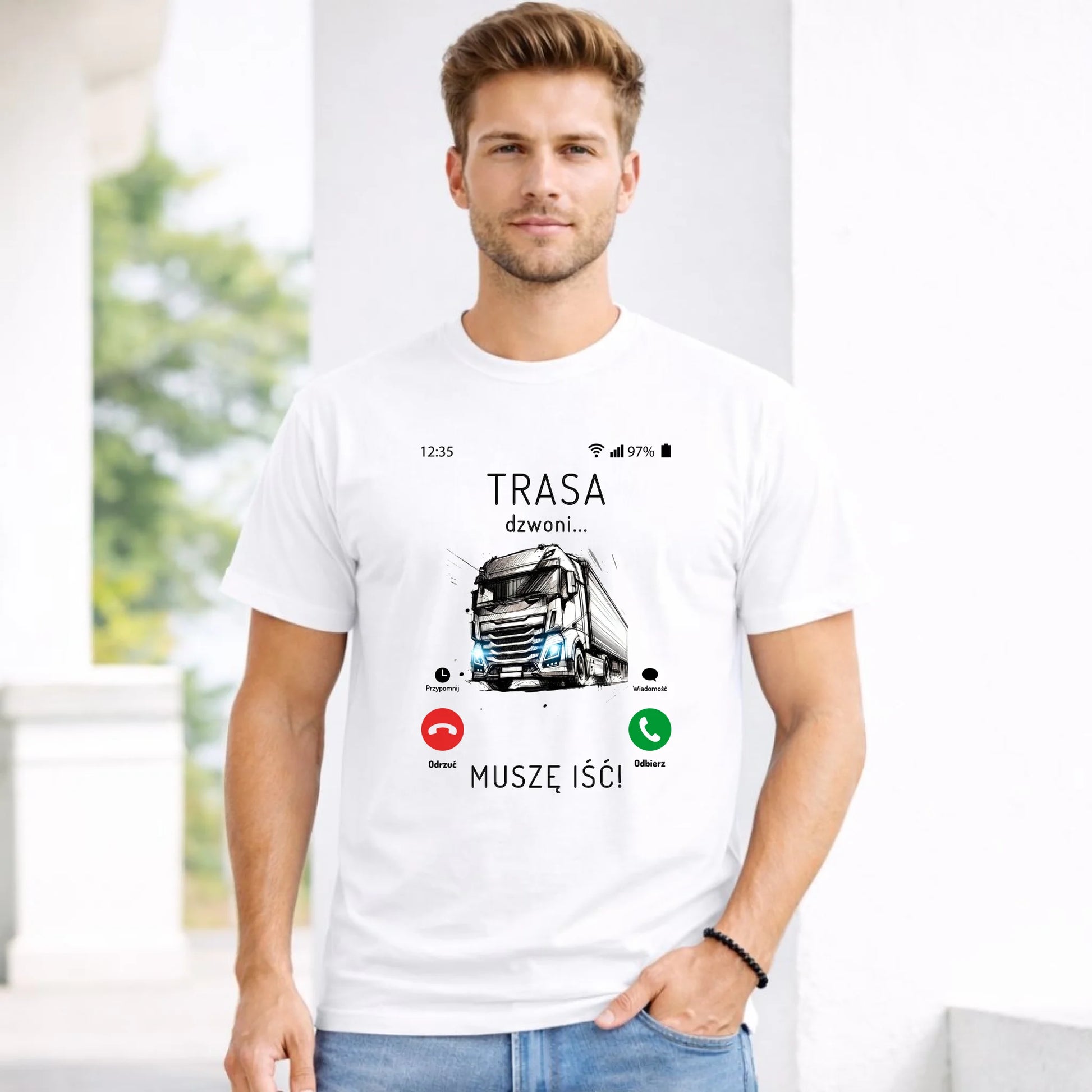Koszulka męska dla kierowcy tira - Trasa dzwoni muszę iść ZKT03
