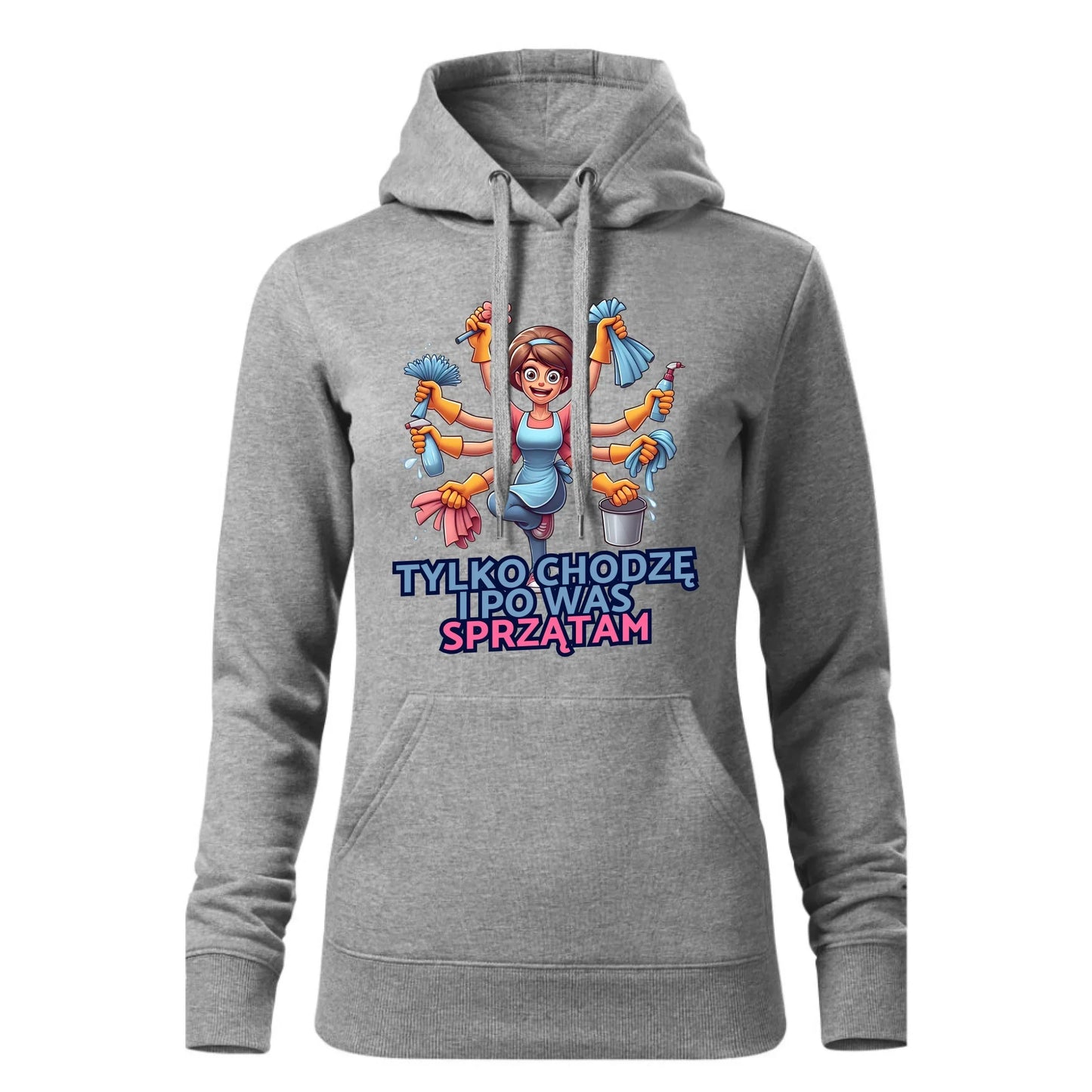 Tylko chodzę i po Was sprzątam | Damska bluza z kapturem dla mamy DM42