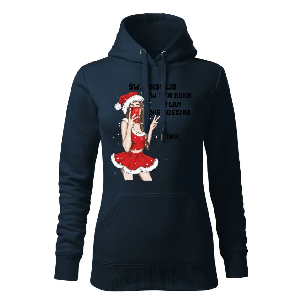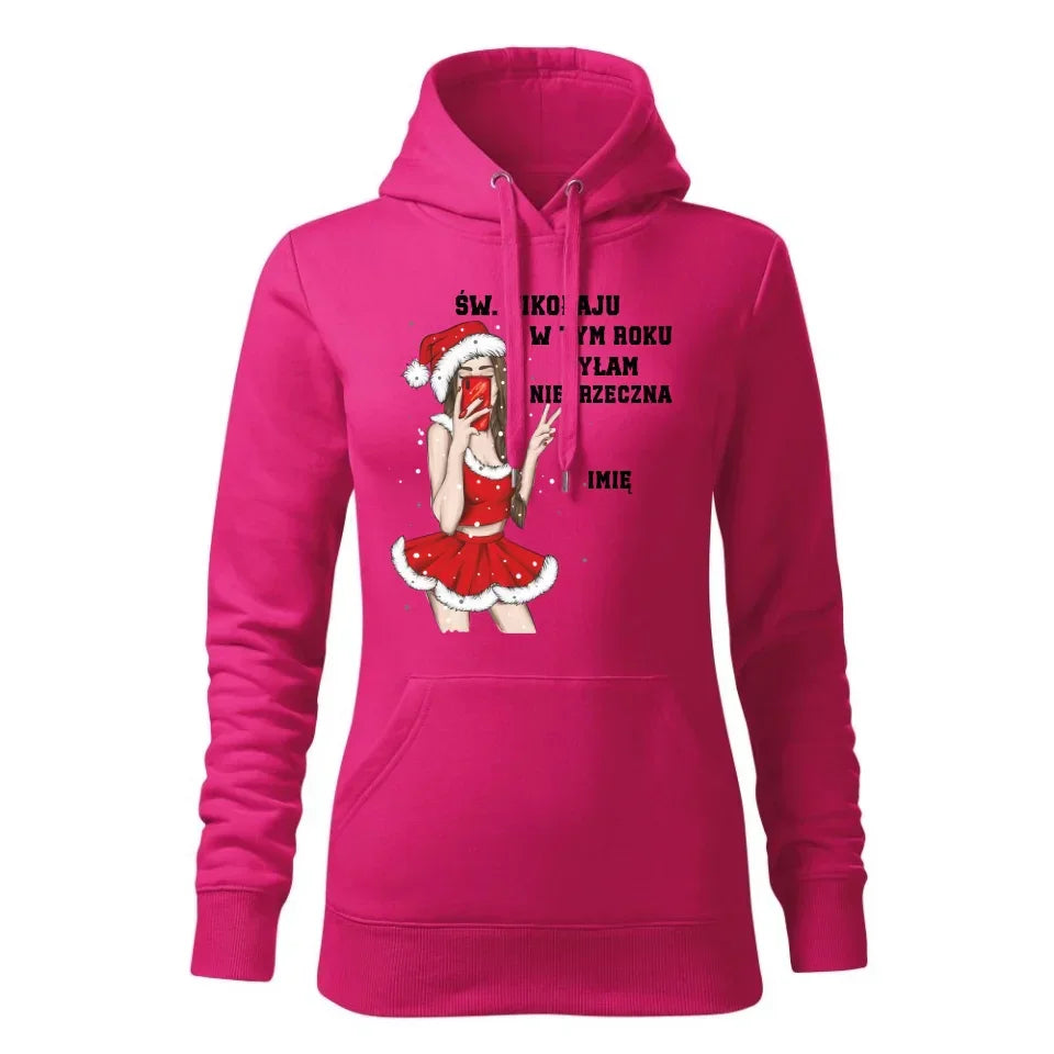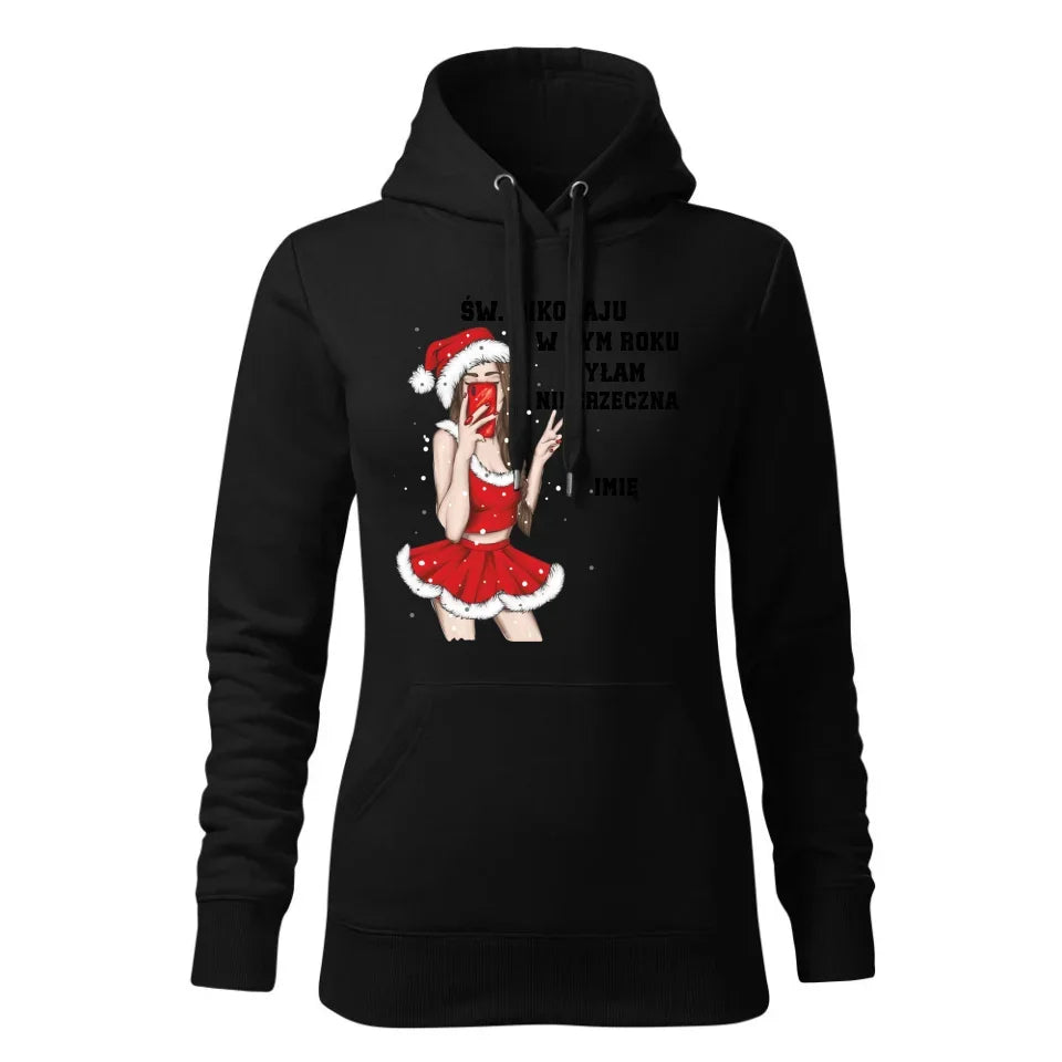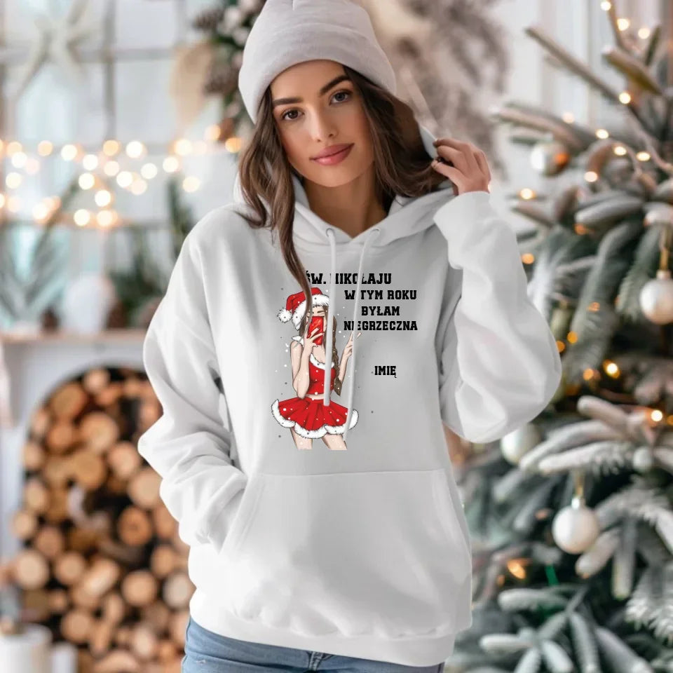 W tym roku byłam niegrzeczna | Personalizowana bluza damska z kapturem na święta BN21