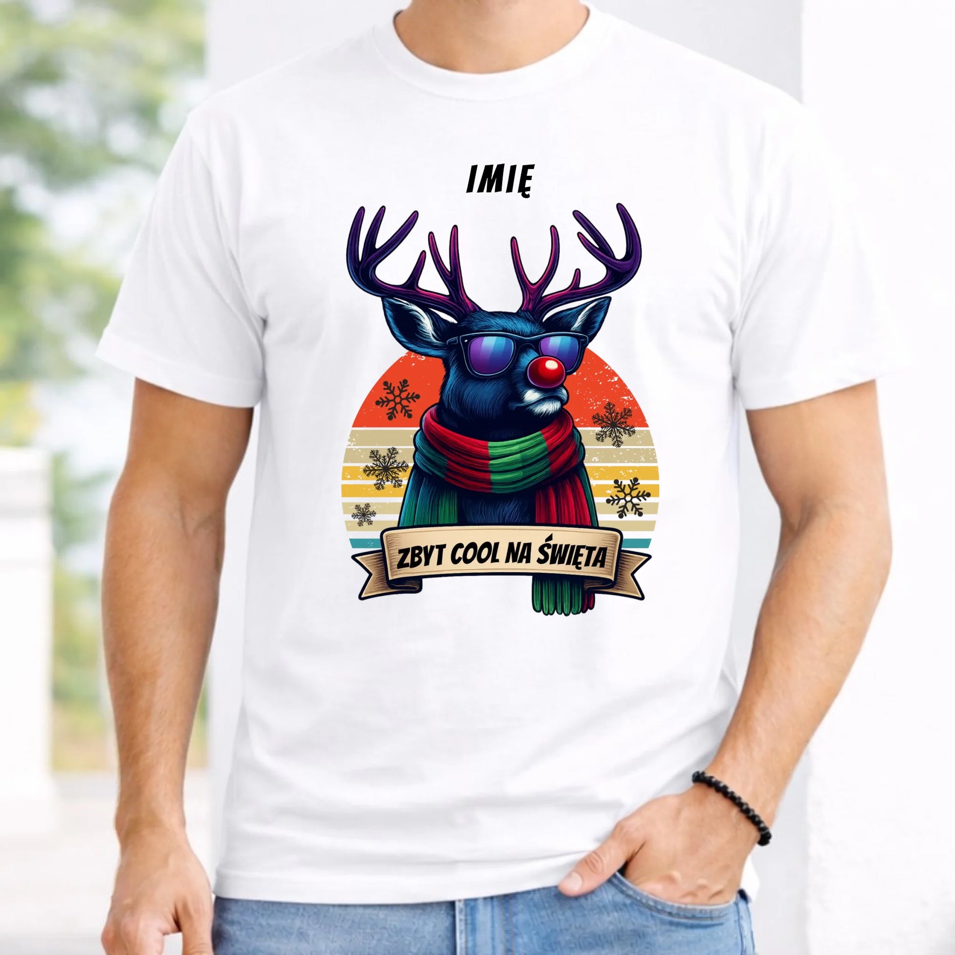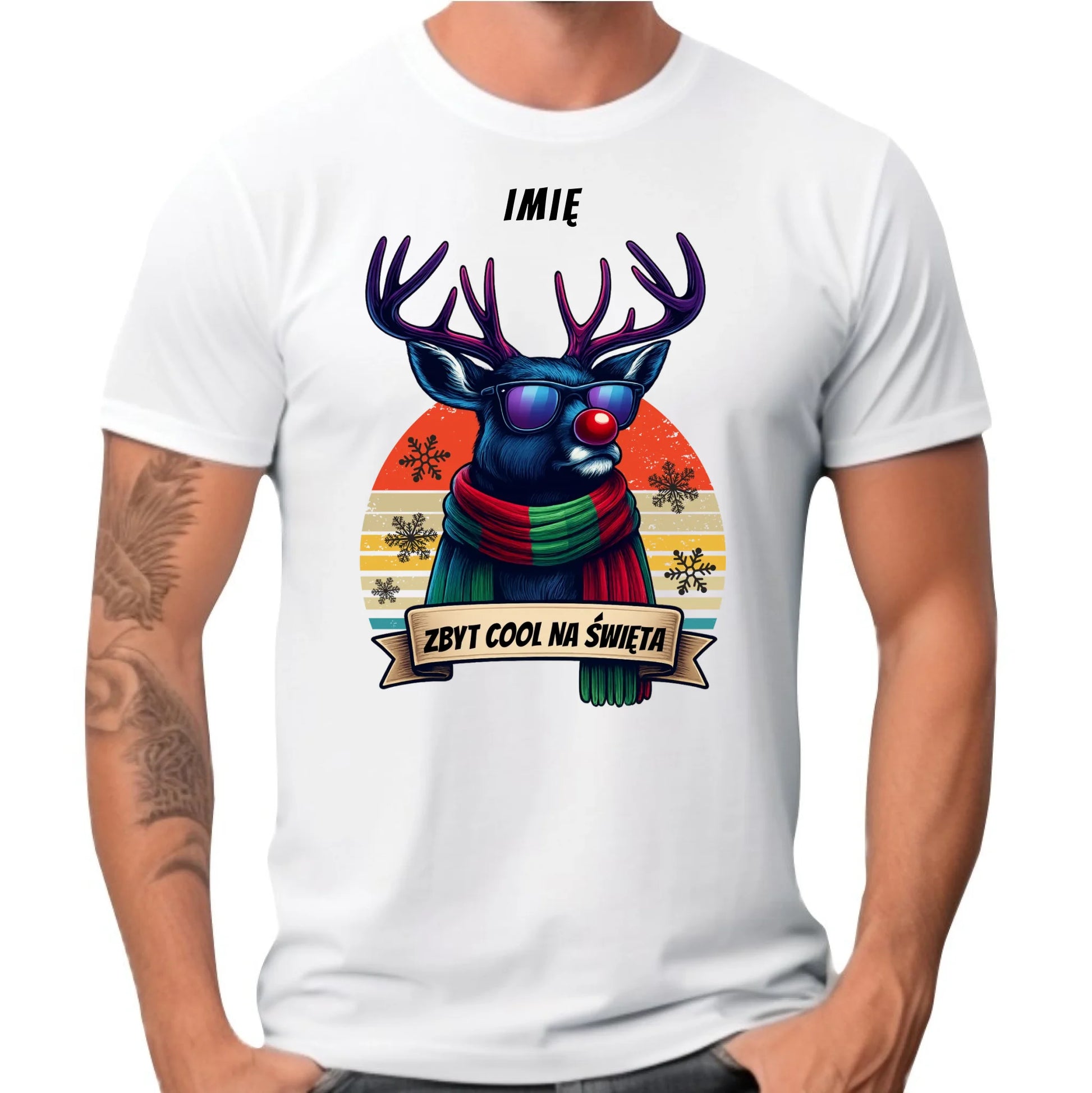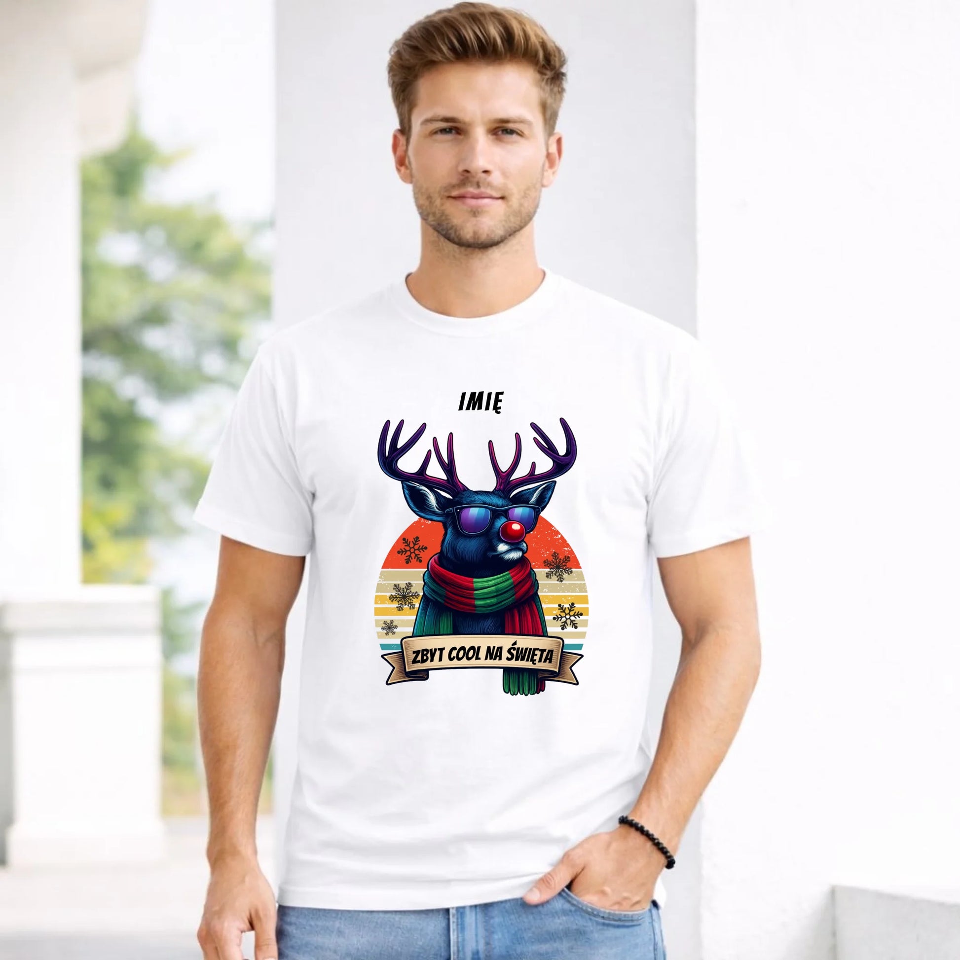 Koszulka męska świąteczna z reniferem - Zbyt cool na święta - personalizowana BN128