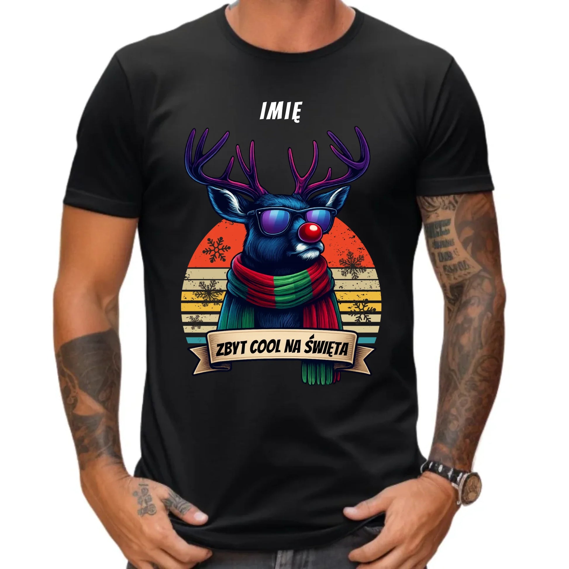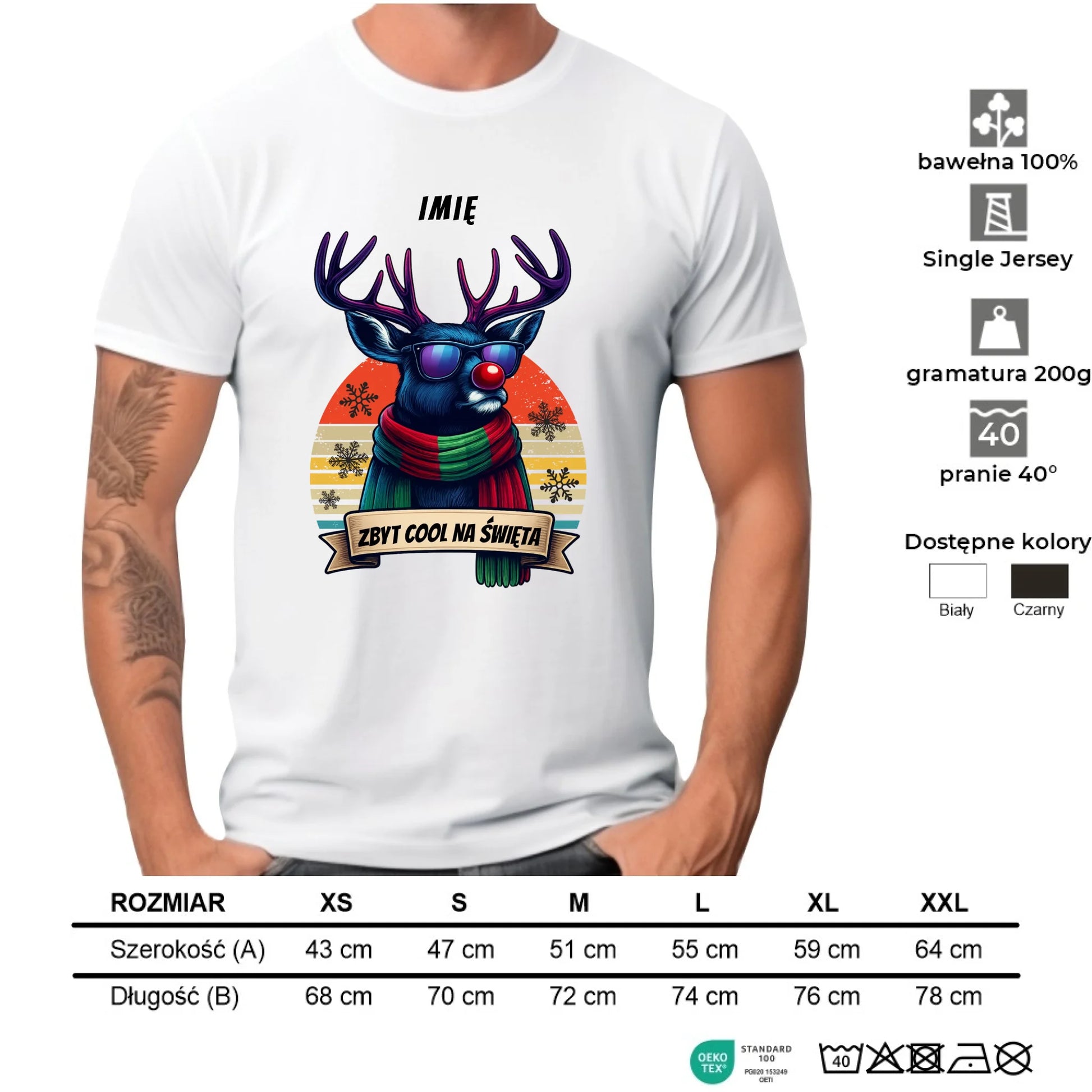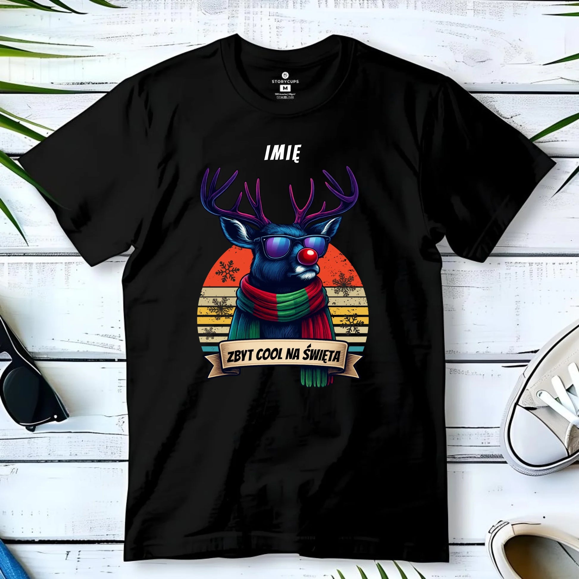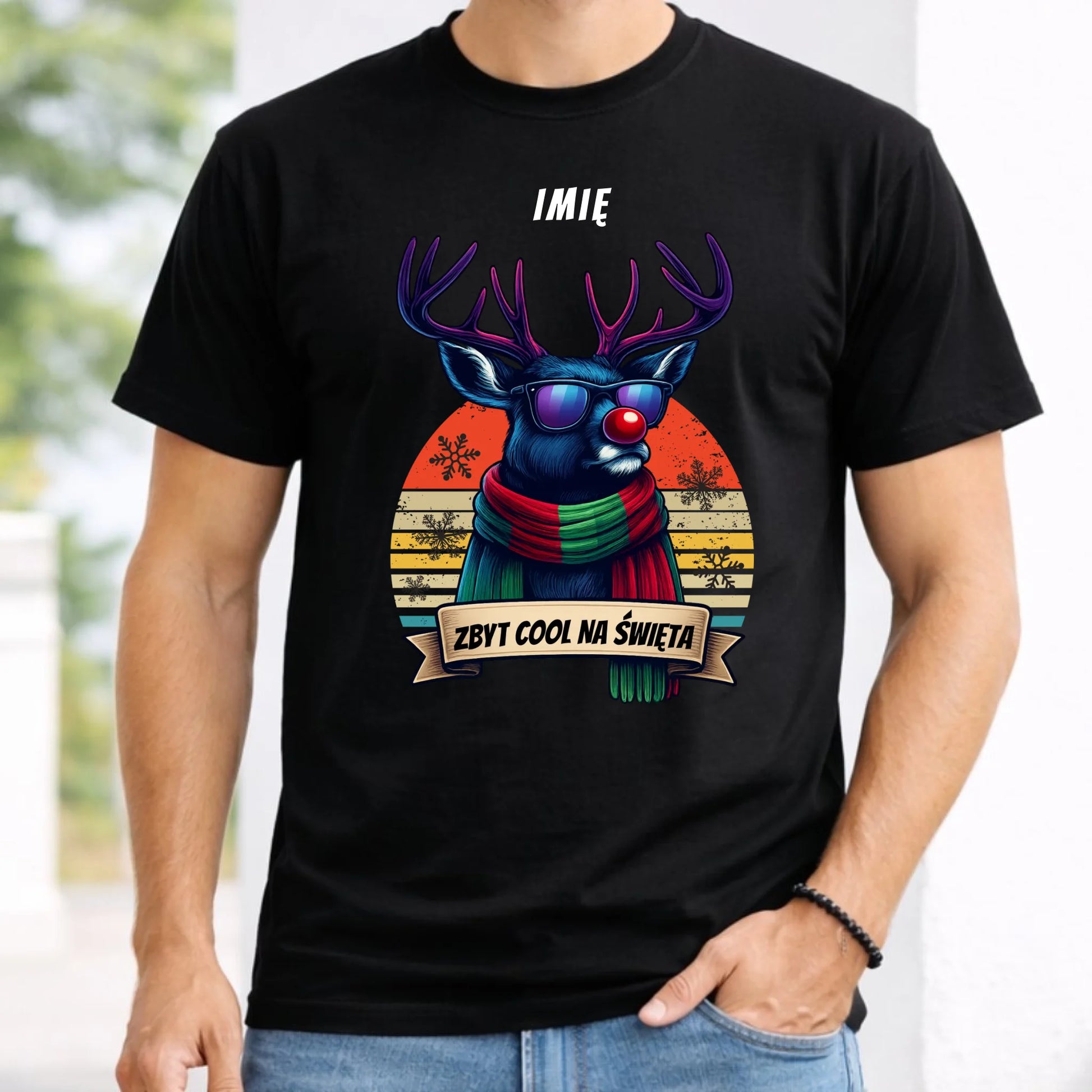 Koszulka męska świąteczna z reniferem - Zbyt cool na święta - personalizowana BN128