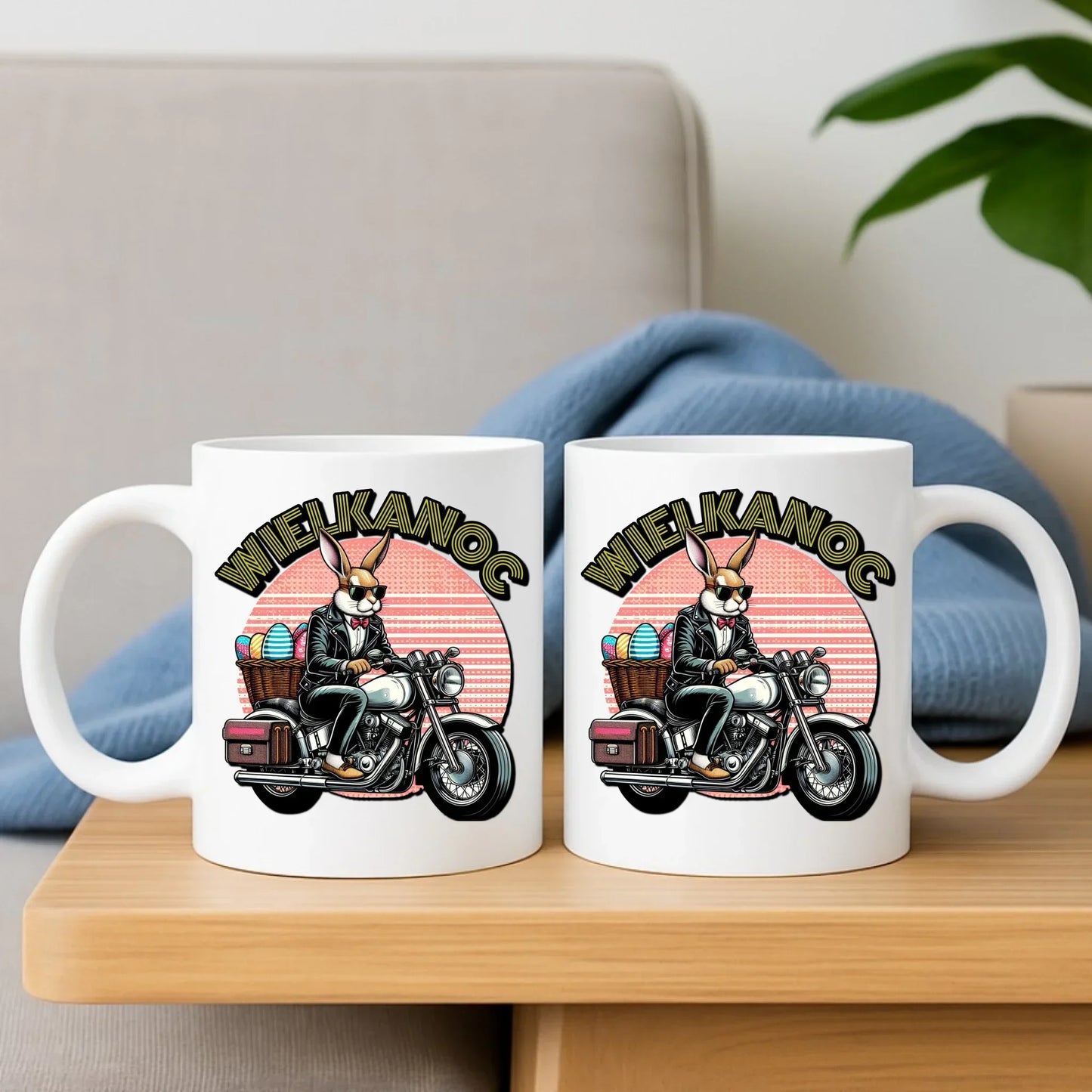 Zając na motorze | Zestaw poduszka i kubek Wielkanocny WN29