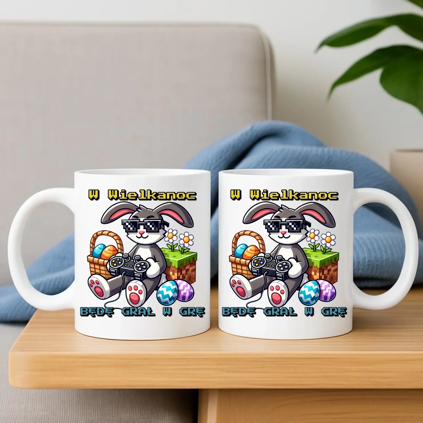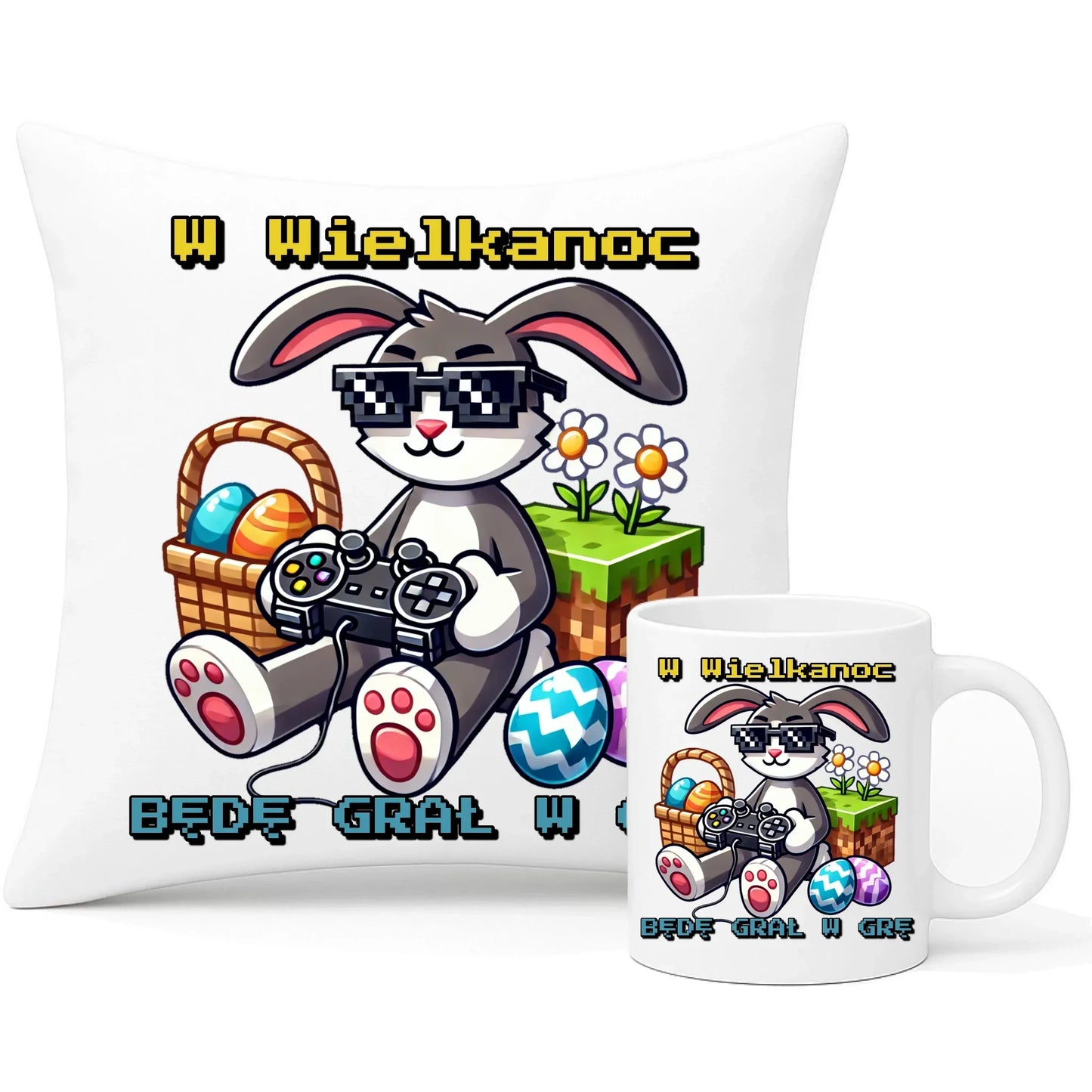 Zajączek Minecraft | Zestaw poduszka i kubek Wielkanocny WN22