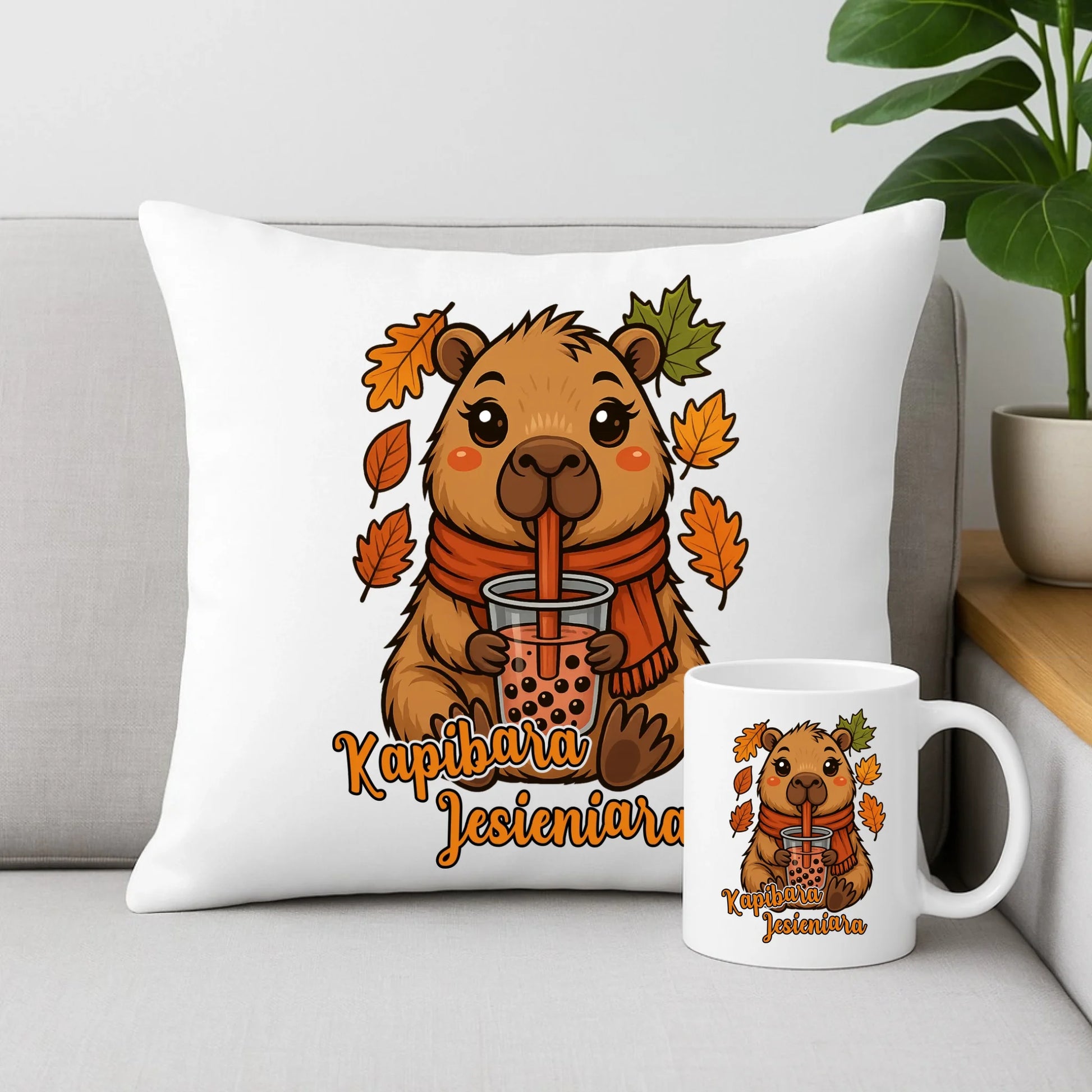 Zestaw poduszka i kubek jesienny - Kapibara Jesieniara JS19
