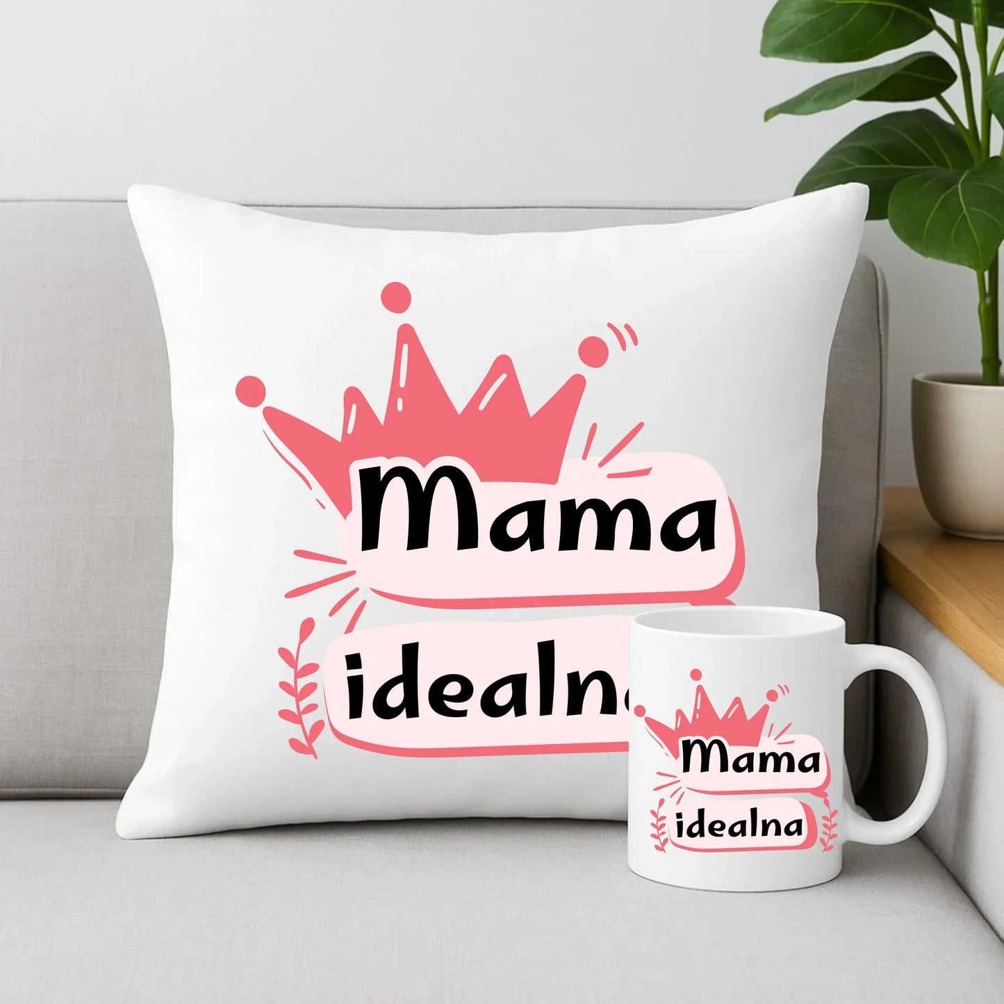 Mama idealna | Zestaw poduszka i kubek prezent dla mamy DM23
